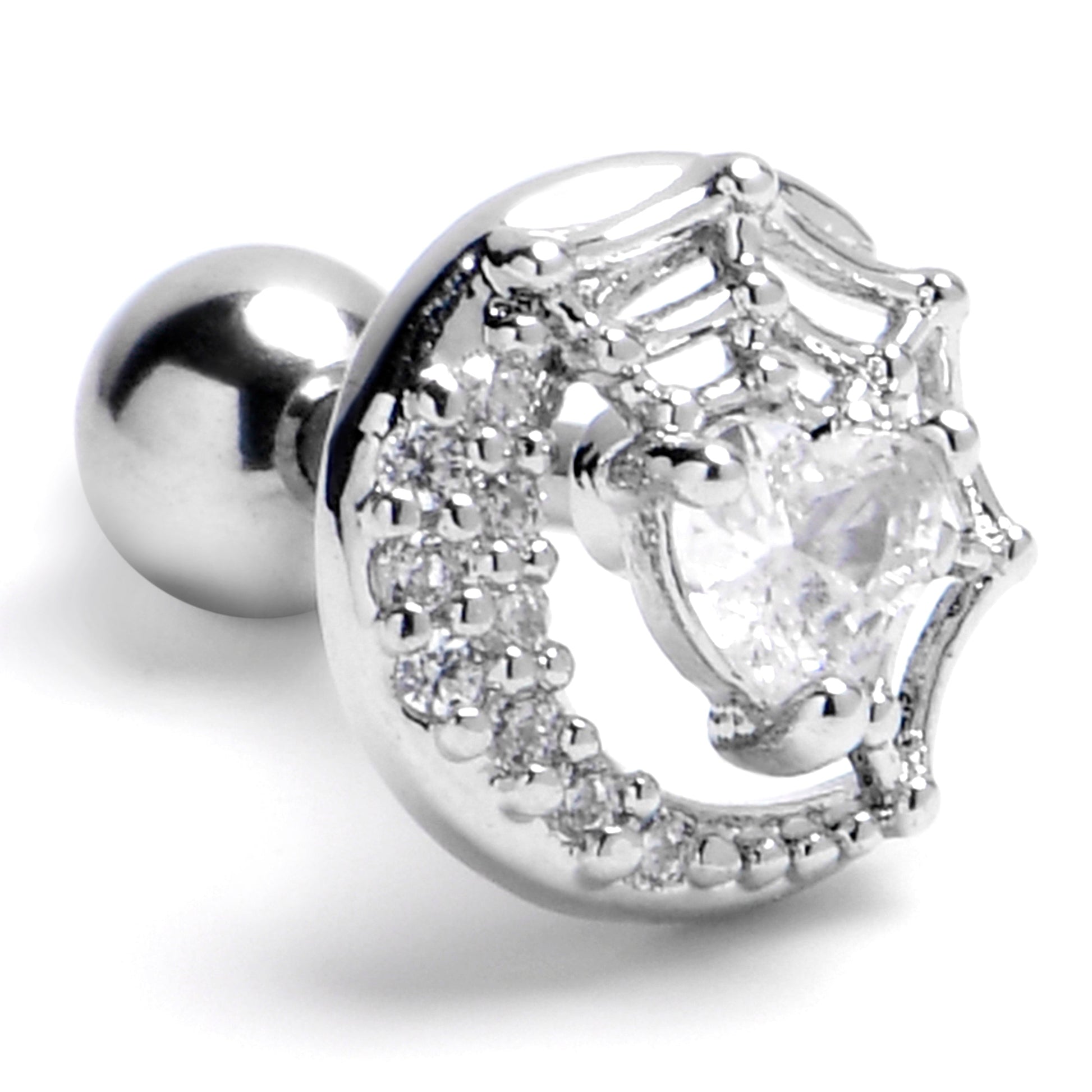 16 Gauge 1/4 Clear Gem Heart Moon Web Cartilage Tragus Earring