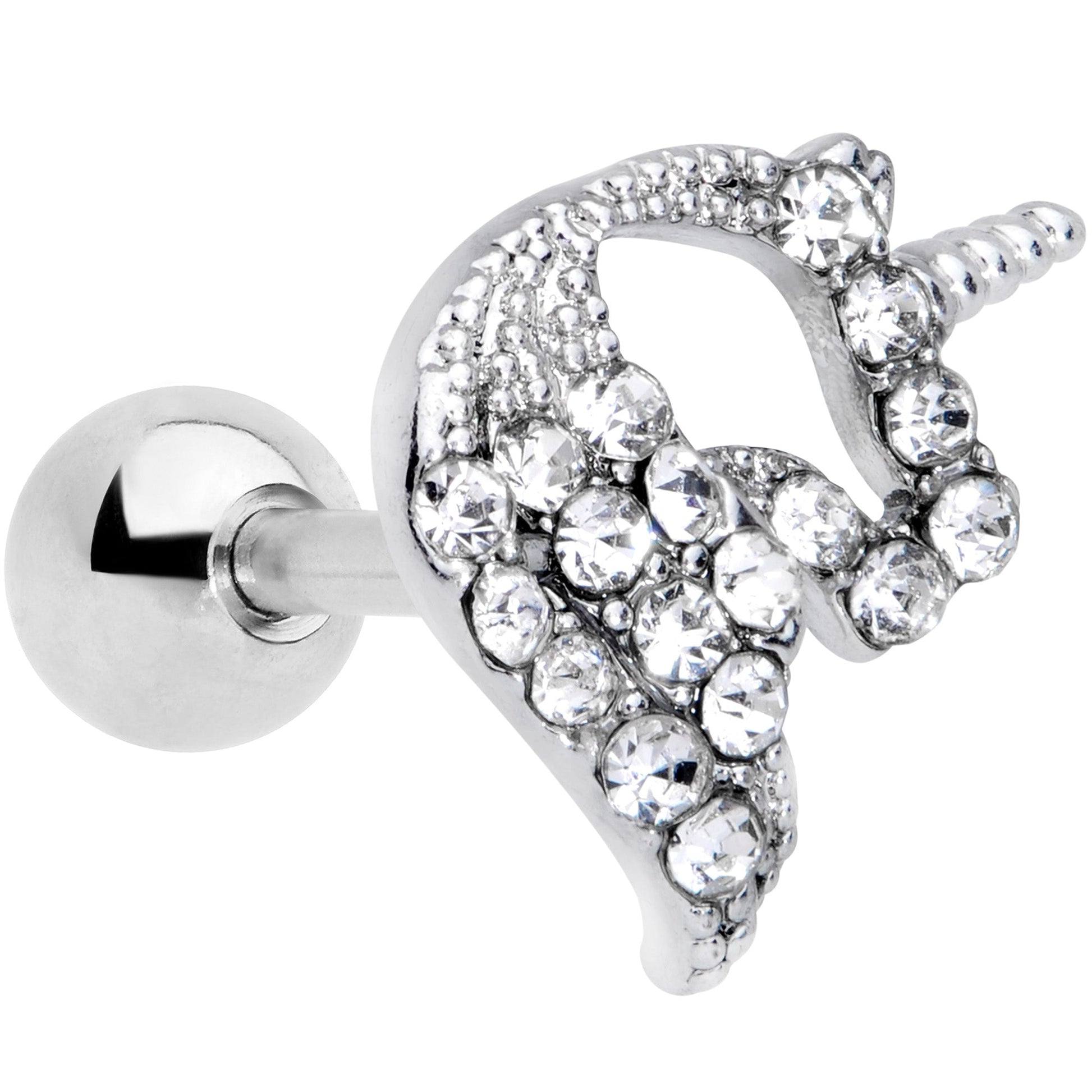 16G 1/4 Clear Gem Silhouette Unicorn Cartilage Tragus Earring