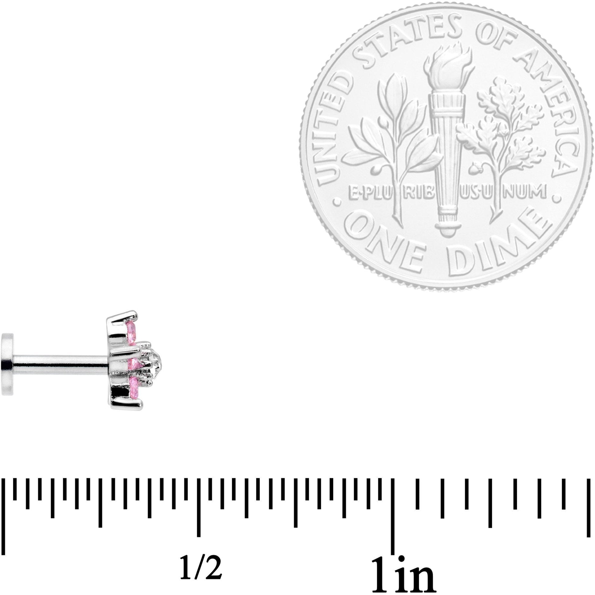 16G 1/4 Clear Pink CZ Gem Star Internally Threaded Labret Tragus