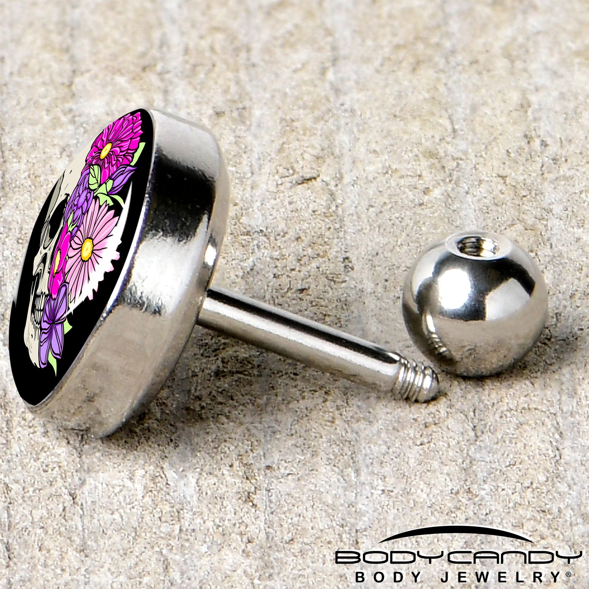 Hypoallergenic jewelry for sensitive skin.16 Gauge 1/4 Floral Flowers Skull Cartilage Tragus Earring