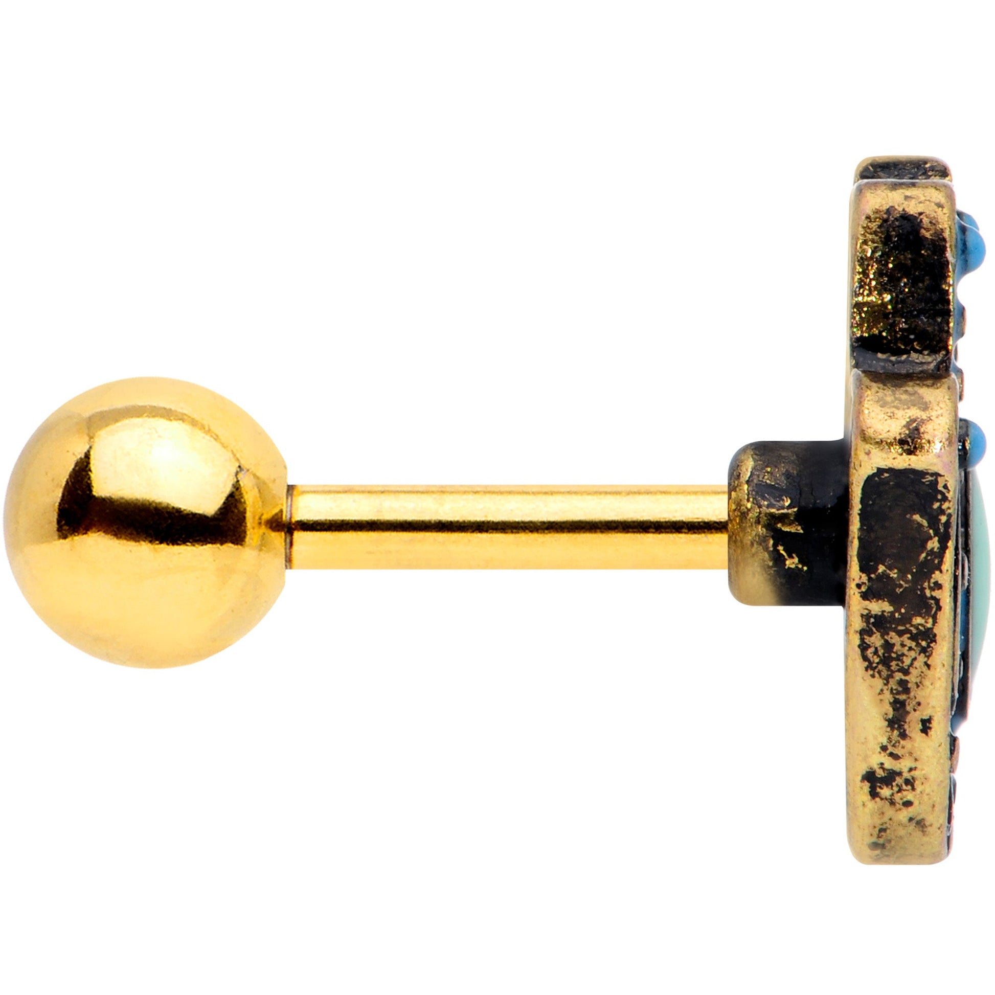 16 Gauge 1/4 Gold Tone Aqua Ornate Hamsa Hand Cartilage Tragus