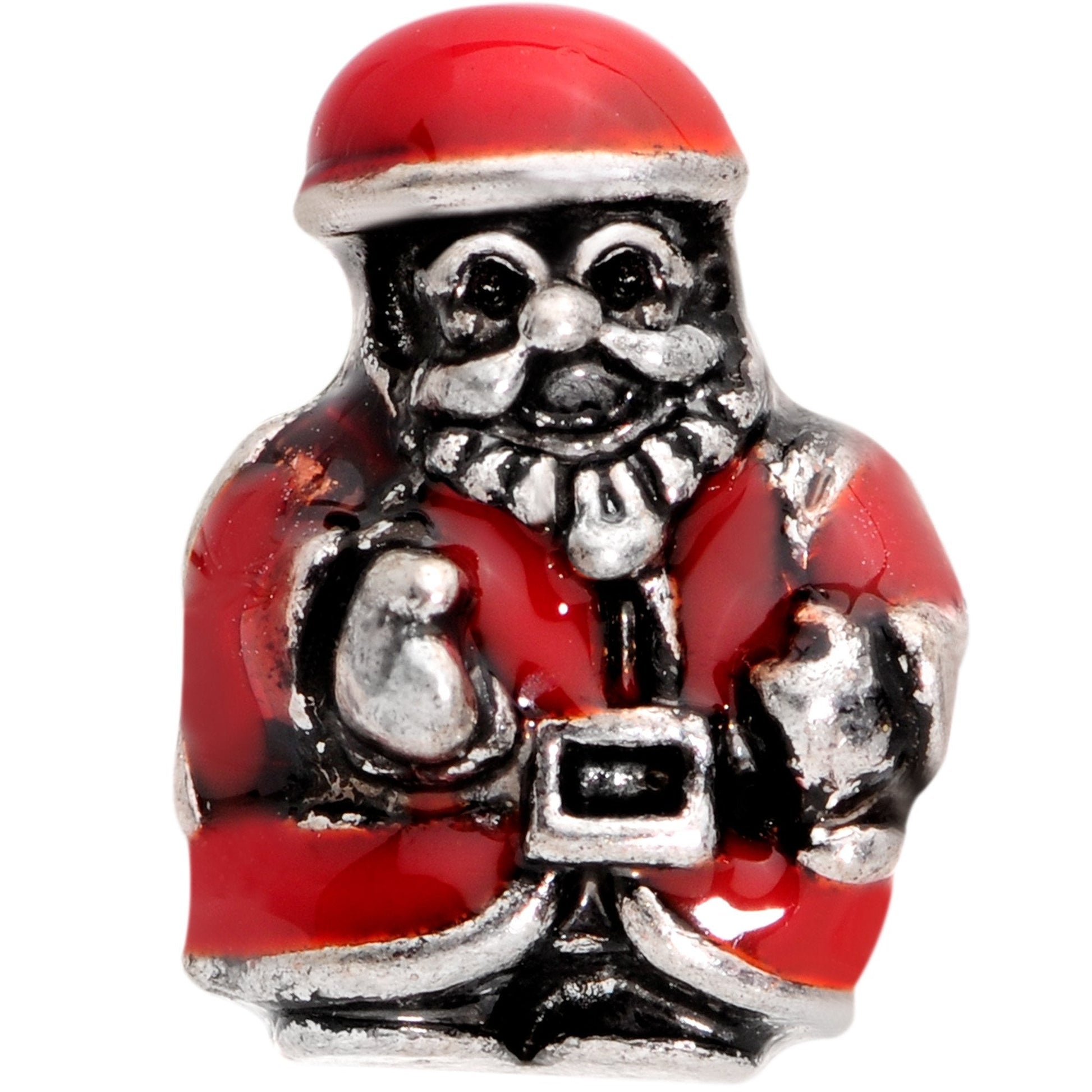 We've all seen Santa holding his belly with mirth, but now you can hold him close to you with this 16 gauge cartilage earring. It's 6mm length and made with a durable 316L surgical grade stainless steel straight barbell that you can fit in multiple piercings including tragus, daith, and helix. Santa sits at the end looking jolly, with his clothes embellished with red inlay for some extra festive flair. Now you can carry the spirit of the holidays with you at all times...just remember to be good!Specifications