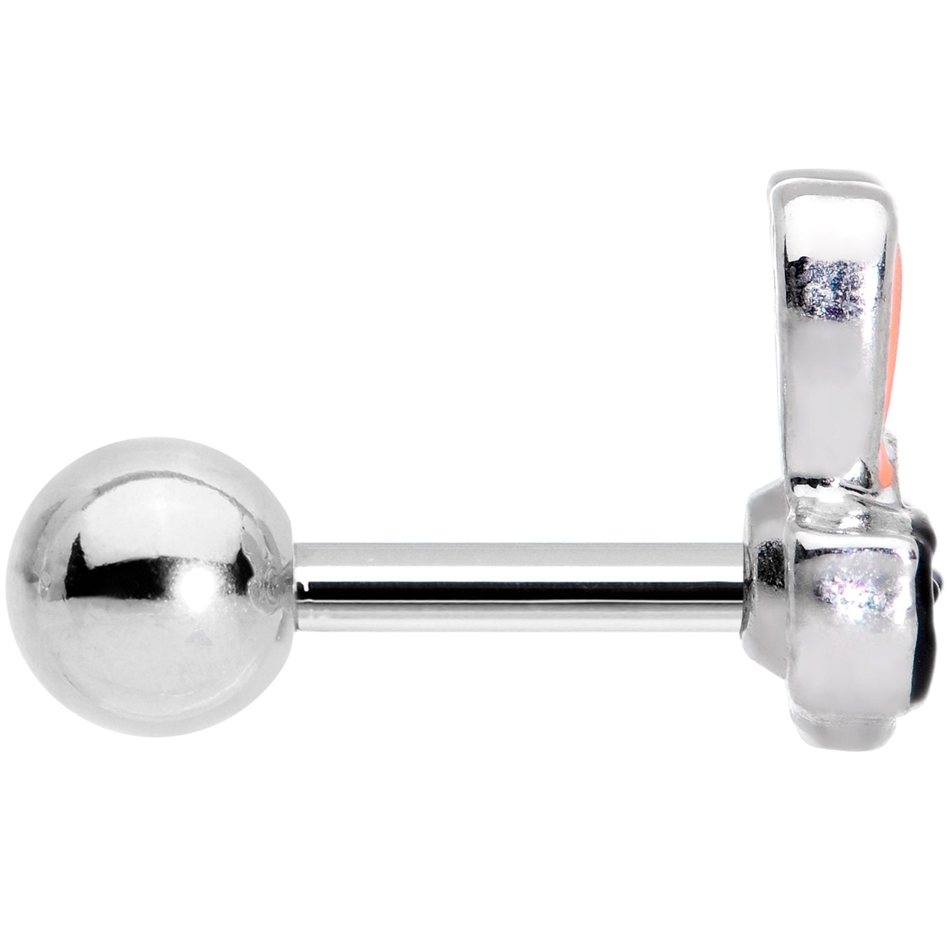 The Easter Bunny is quite the intellectual nowadays and he's just dying to whisper all his knowledge into your ear! This 16 gauge cartilage earring is made with a 6mm durable 316L surgical grade stainless steel straight barbell and has a 3mm ball end. It features an adorable Easter Bunny charm. He is color inlaid to really emphasize every detail, from his white fur to the pink of his perky ears, to his black thick-framed glasses. And like most rabbits, he likes to move around...this earring works beautifully in multiple piercings including the conch, tragus, and helix. Pop him into your piercing, no doubt he'll teach you something new!Specifications