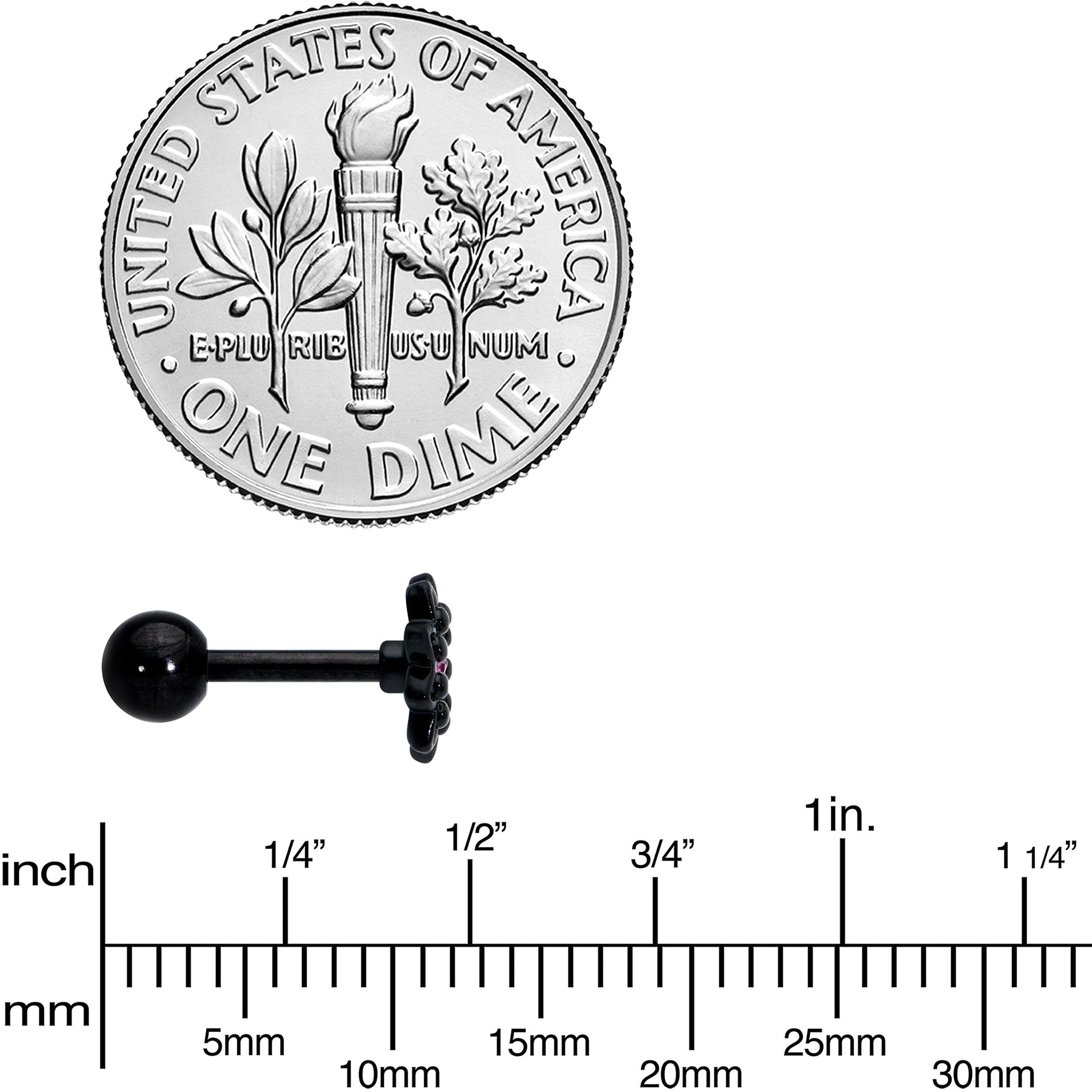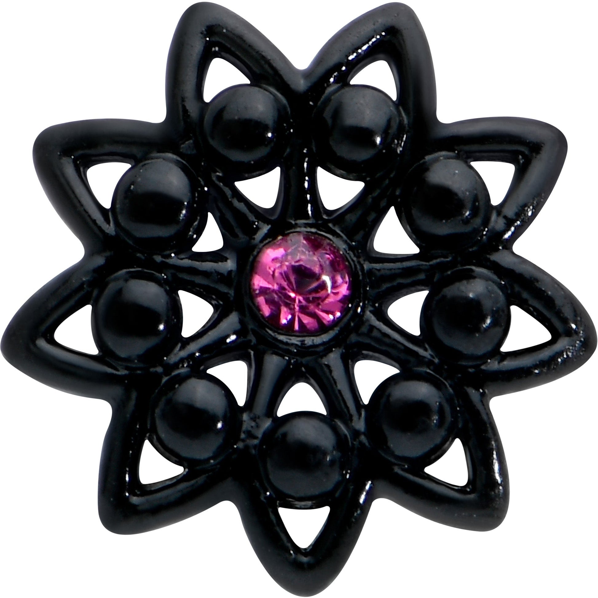 16 Gauge 1/4 Pink Gem Black Midnight Flower Cartilage Tragus Earring