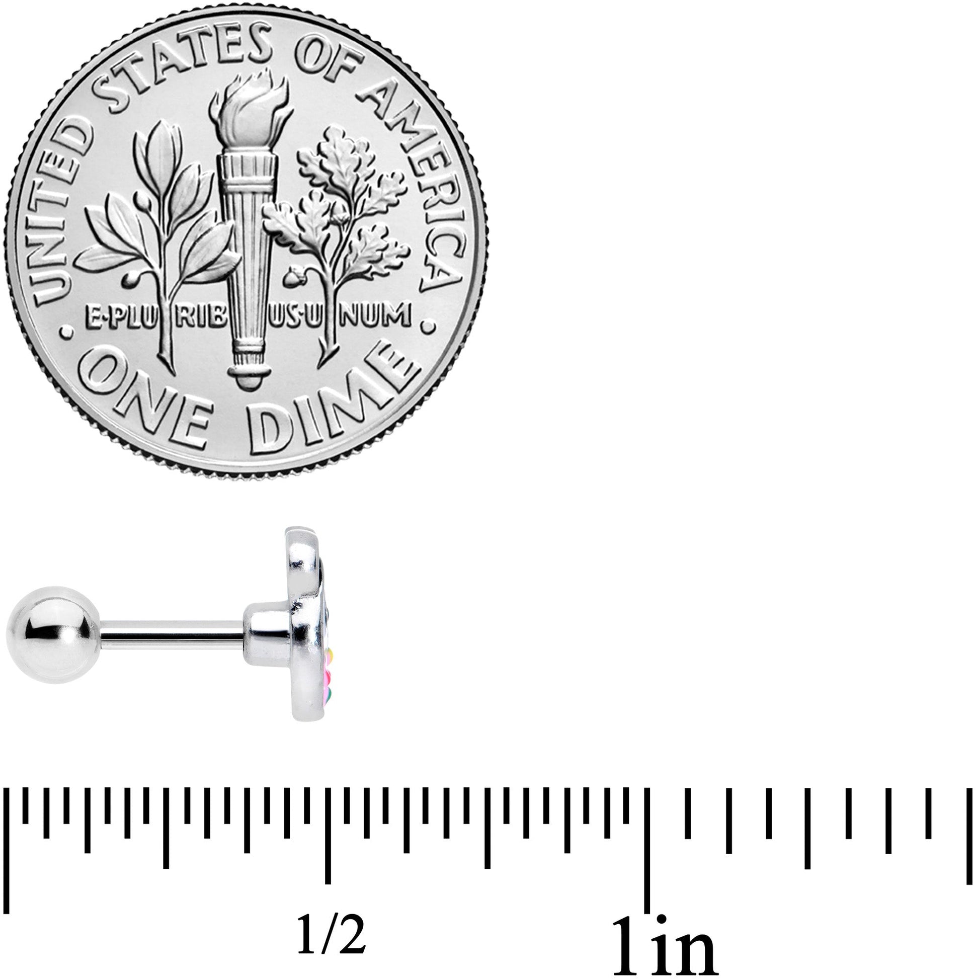 What could possibly be sweeter than this 16 gauge tragus stud? It's made with a 6mm durable 316L surgical grade stainless steel straight barbell with a 4mm ball end. The front features a panda bear charm peeking up from a donut, iced in pink with multicolor sprinkles. And this pastry-loving panda can hang out in multiple piercings including helix, tragus, and some conch piercings. If you're passionate about pandas or you go nuts for donuts, this cartilage stud has got you covered!Specifications