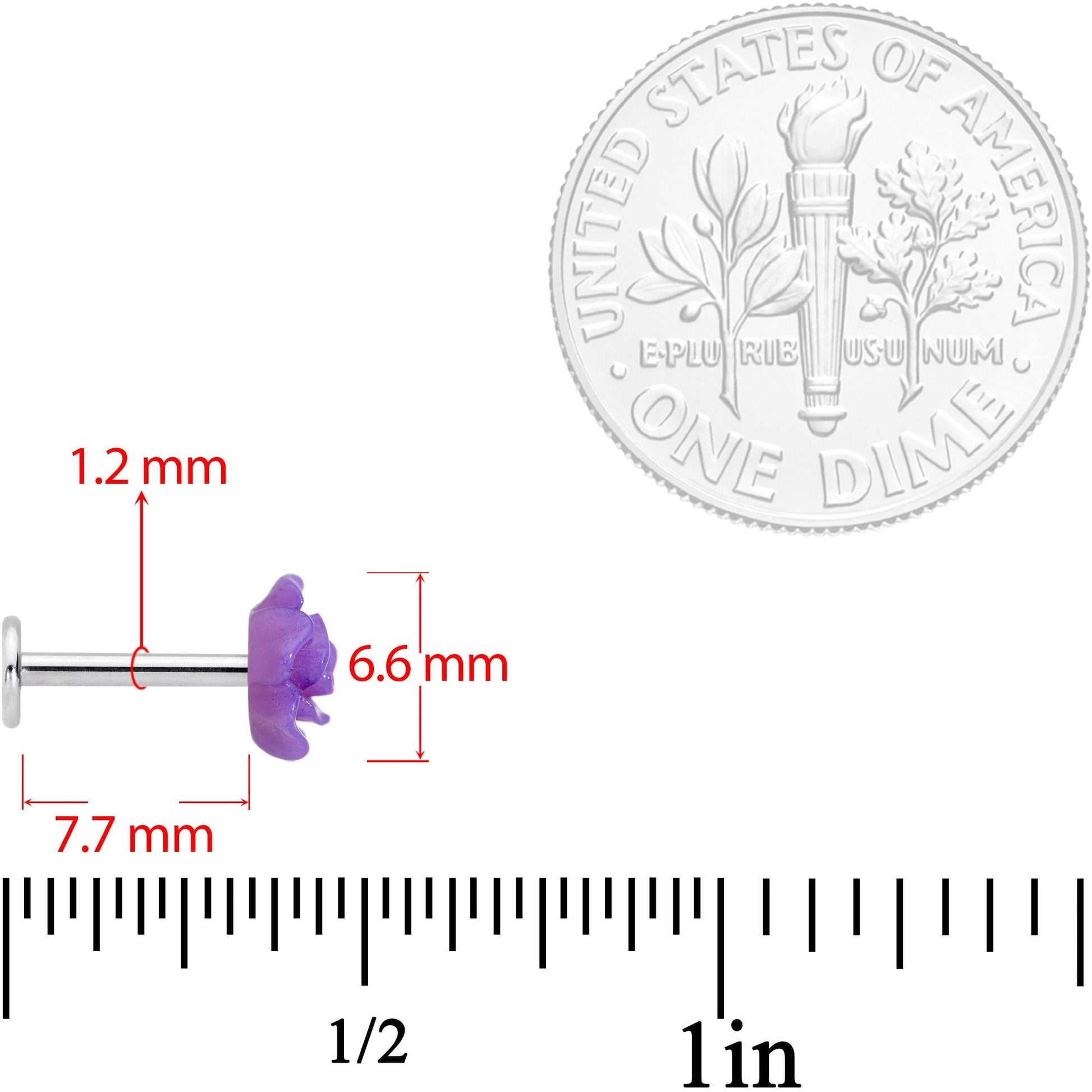 16 Gauge 1/4" Purple Gem Rose Flower Labret Monroe Tragus Set of 4