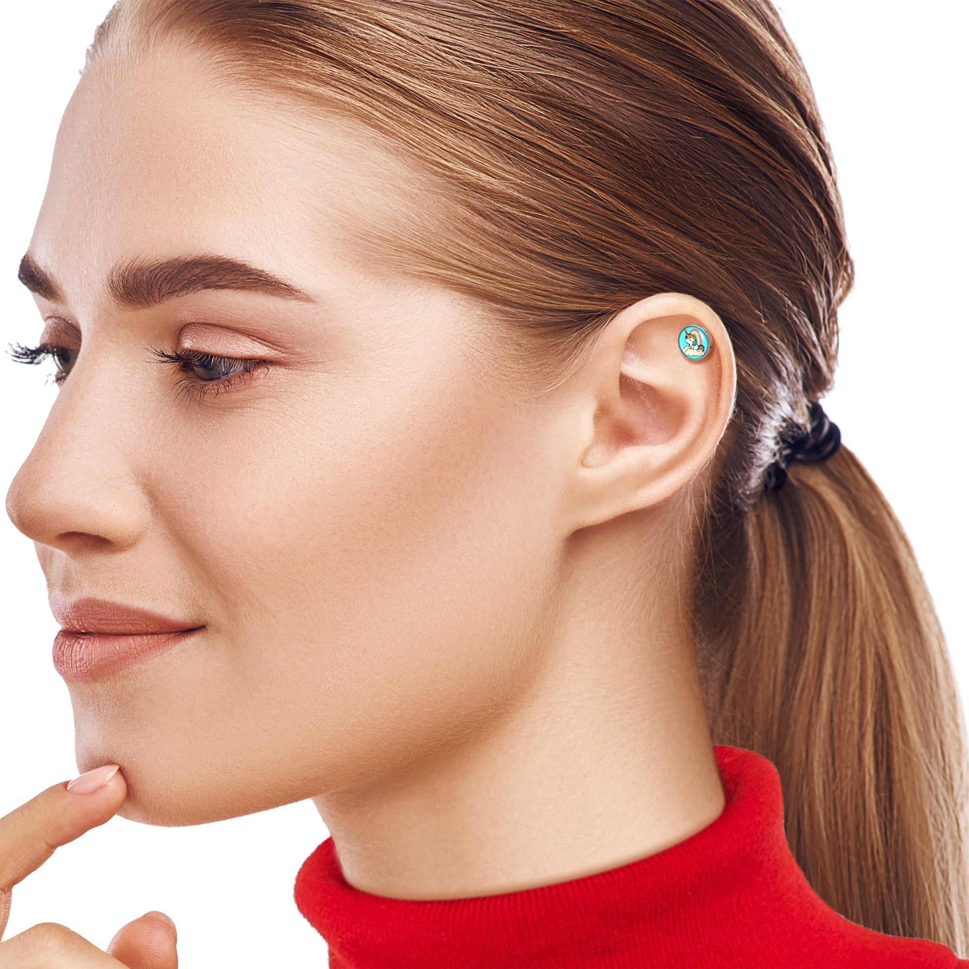 Hypoallergenic jewelry for sensitive skin.16 Gauge 1/4 Rainbow Unicorn Cartilage Tragus Earring