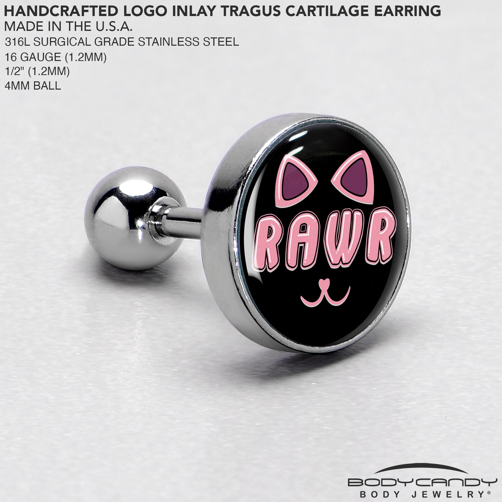 Hypoallergenic jewelry for sensitive skin.16 Gauge 1/4 RAWR Kittly Cat Tragus Cartilage Earring