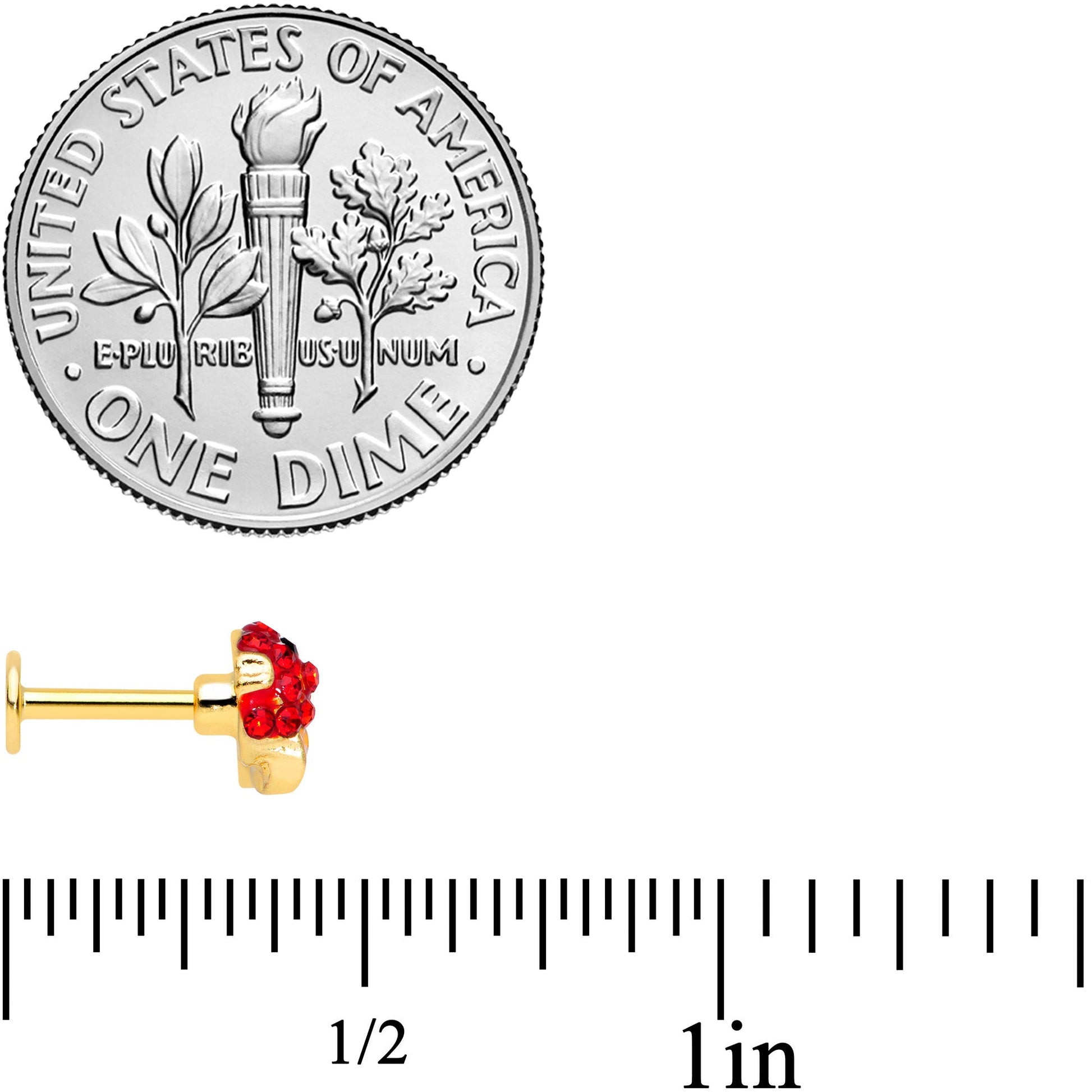16G 1/4 Red Gem Gold Tone Blow Fish Labret Monroe Tragus