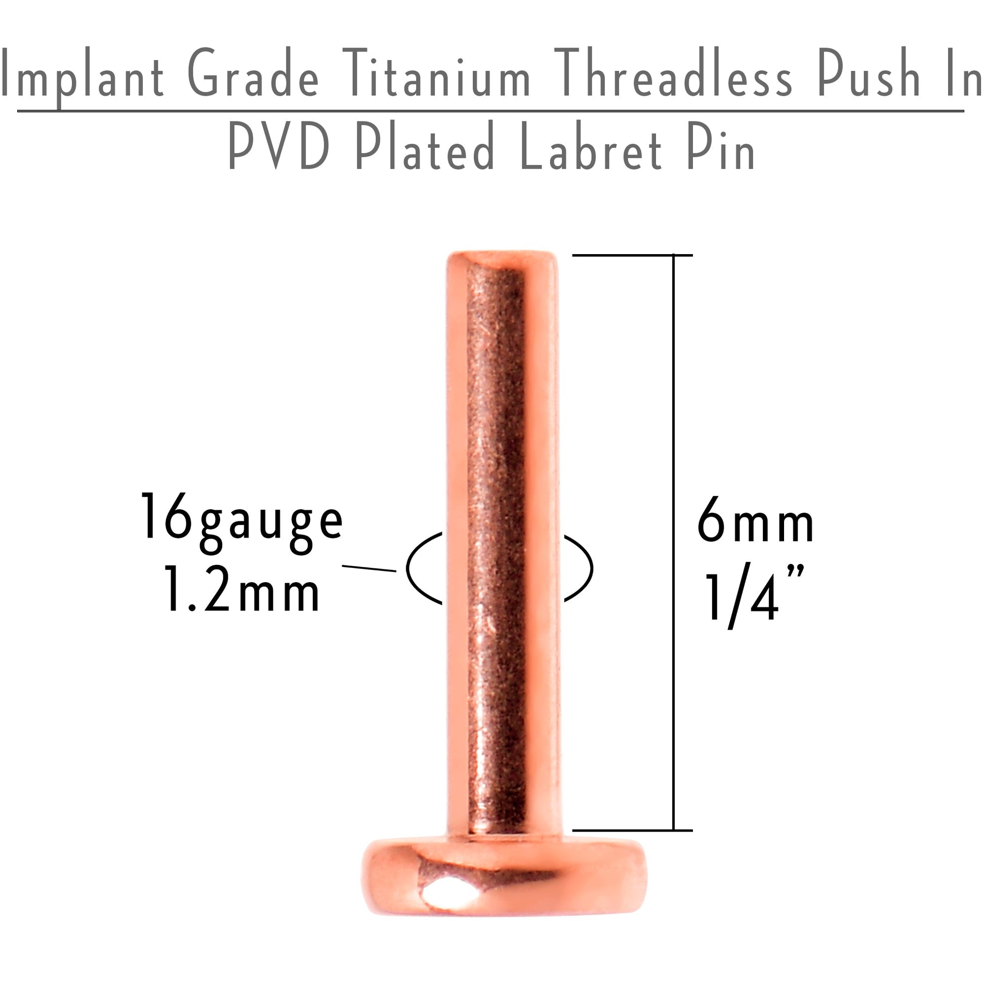 Hypoallergenic jewelry for sensitive skin16 Gauge 1/4 Rosy Tone ASTM F-136 Titanium Threadless Post Only Labret