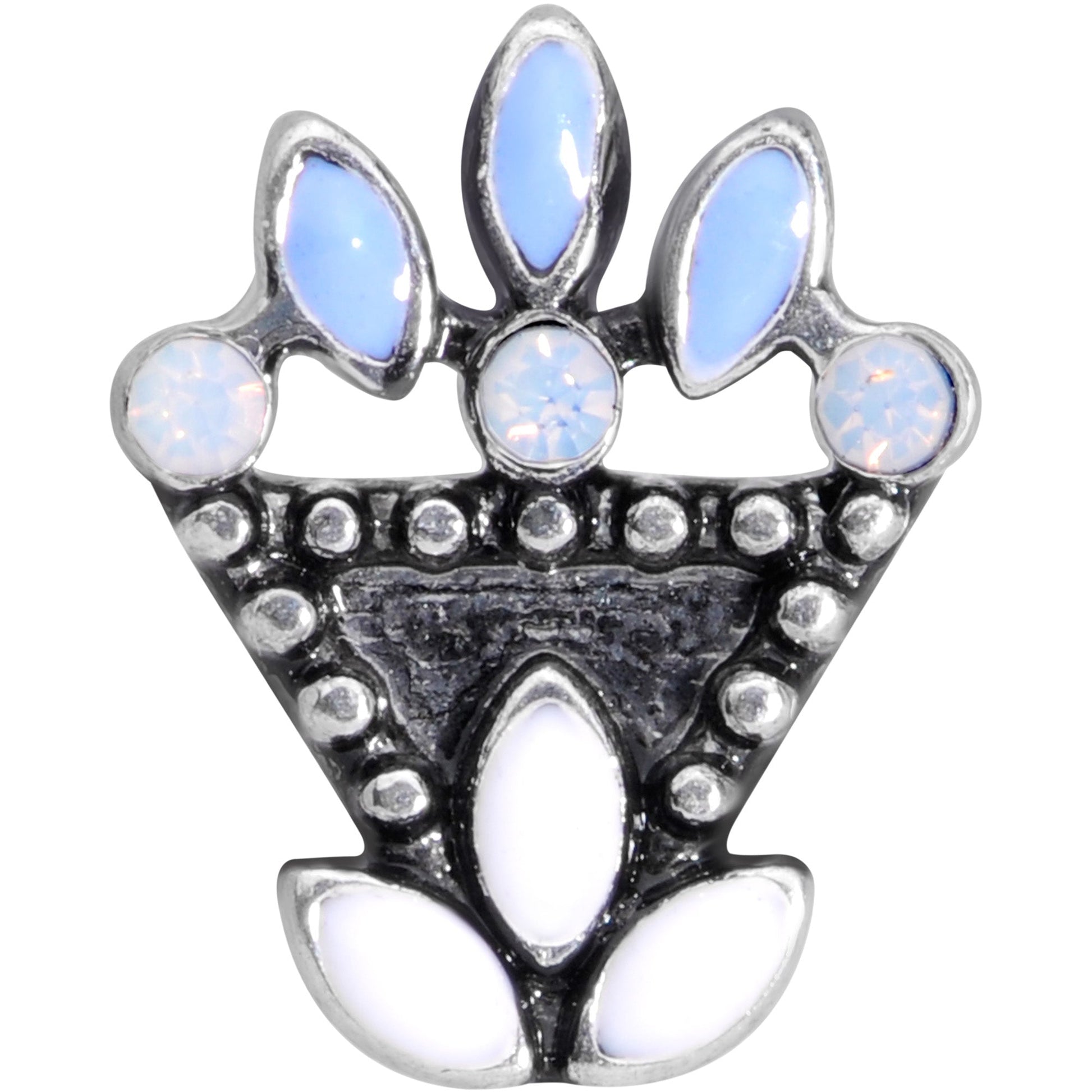 16 Gauge 1/4 White Blue Faux Opal Ornate Labret Monroe Tragus