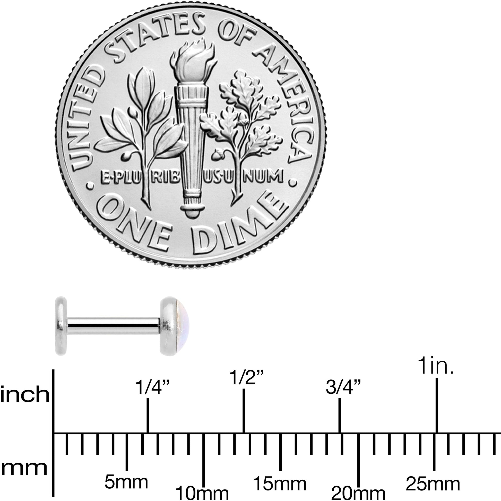 16 Gauge 1/4 White Faux Opal Internally Threaded Labret Monroe Tragus