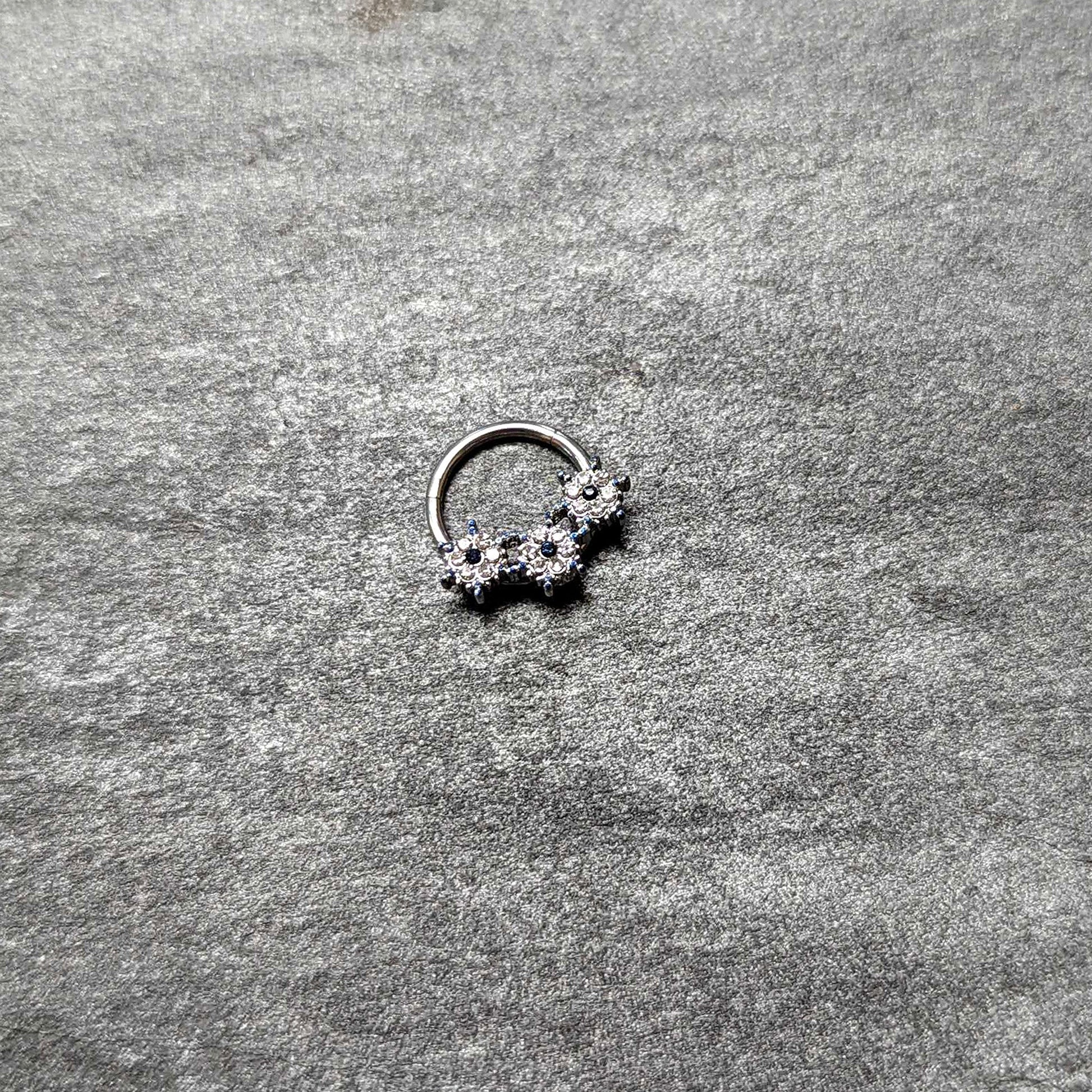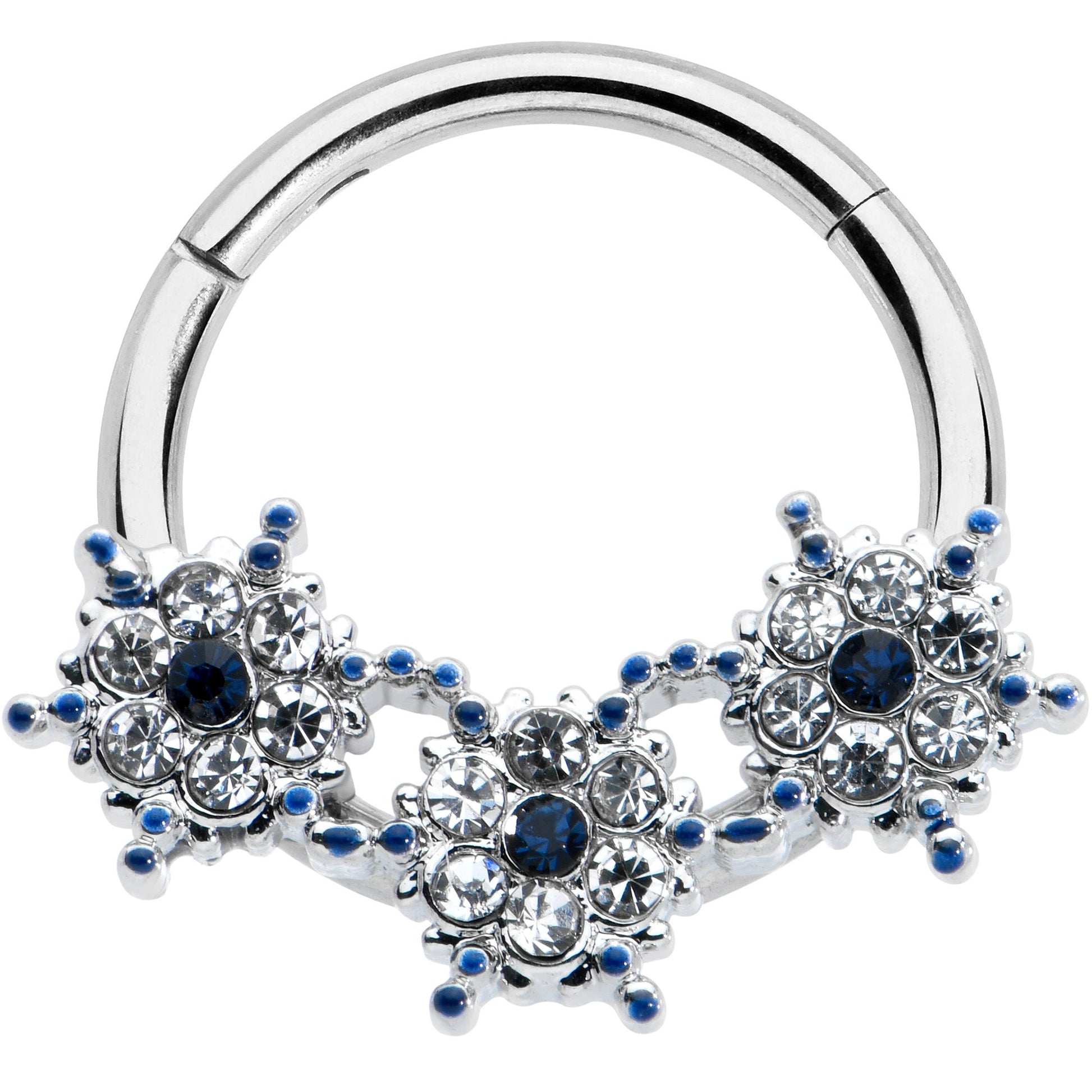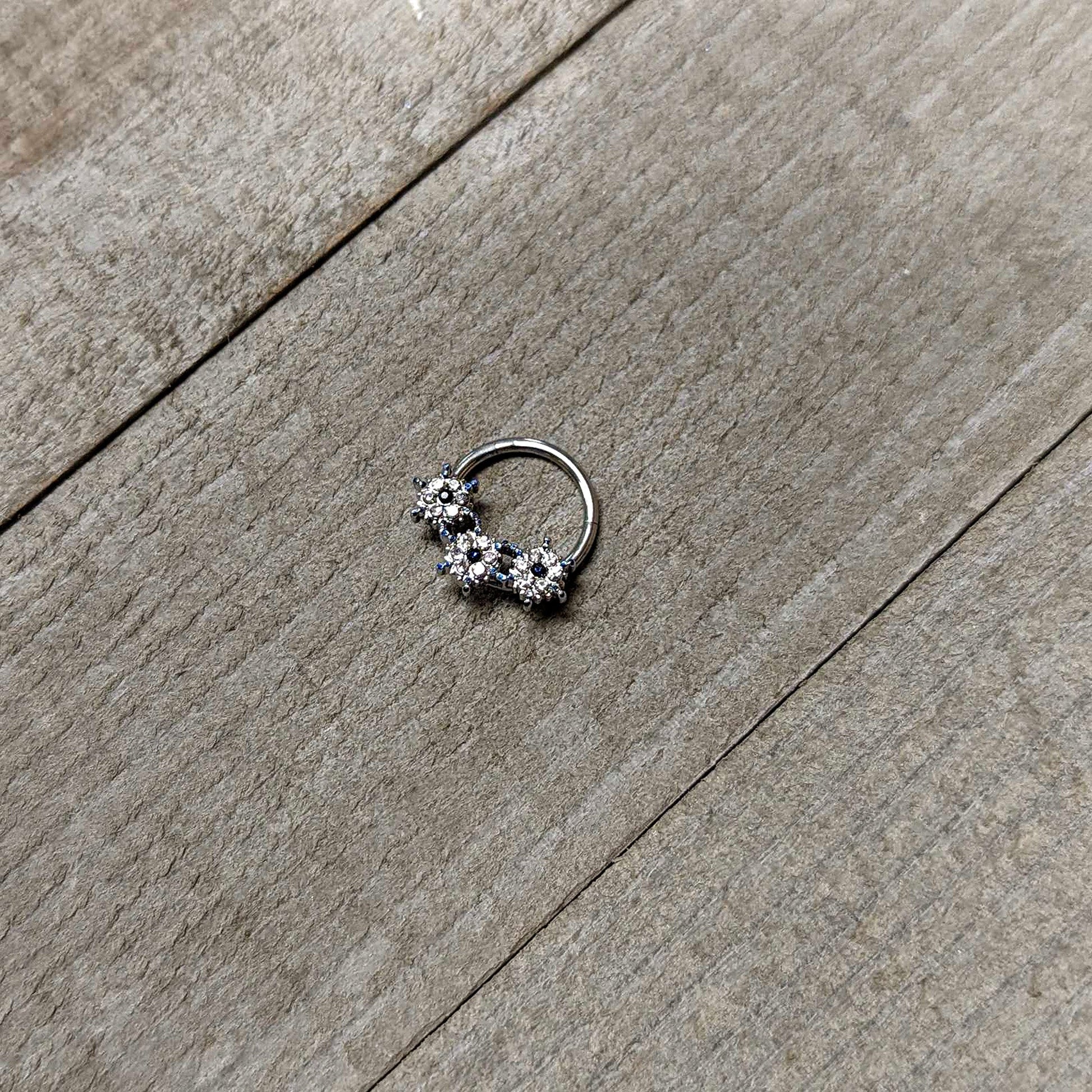 16G 3/8 Clear Blue Gem Festive Trio Snowflake Hinged Segment Ring