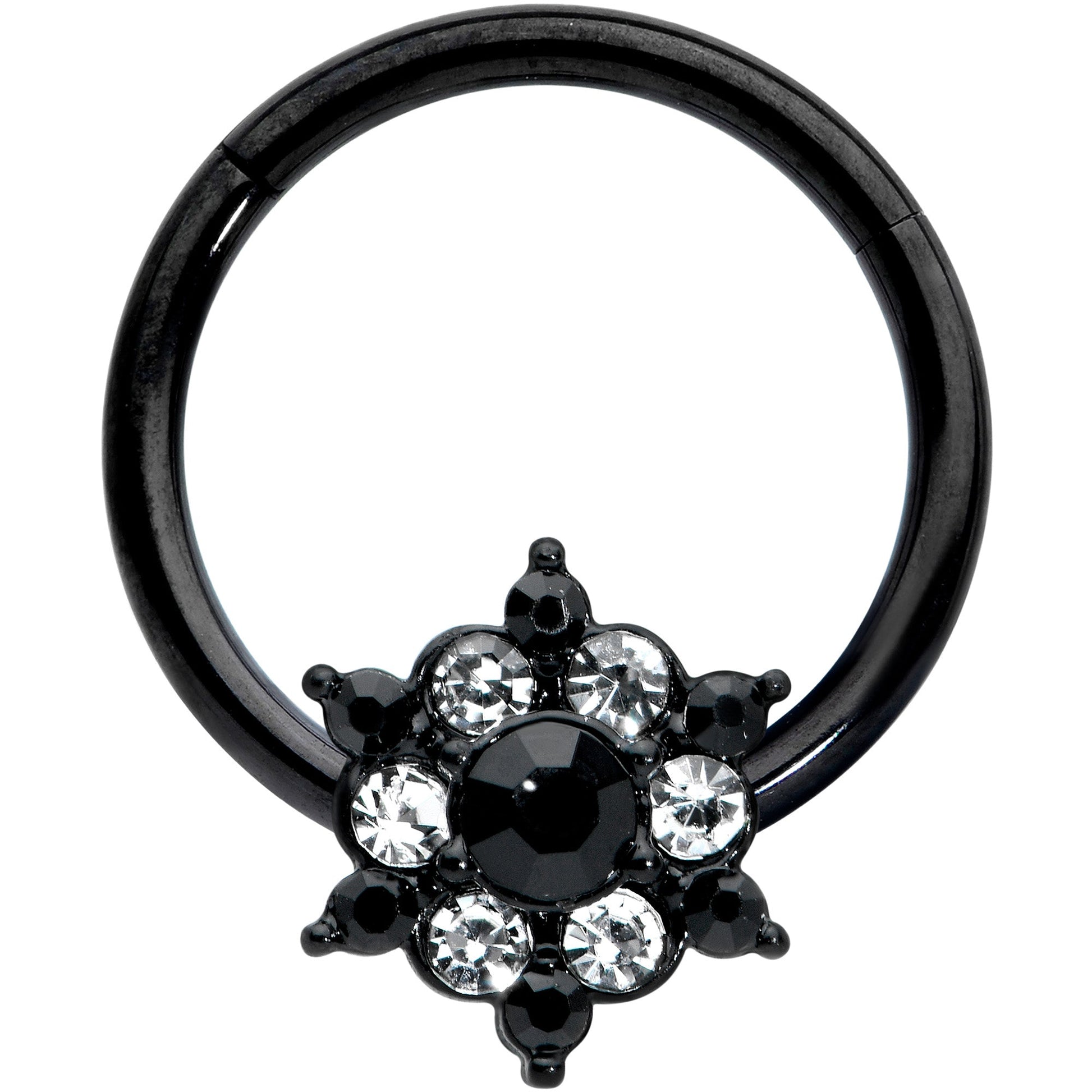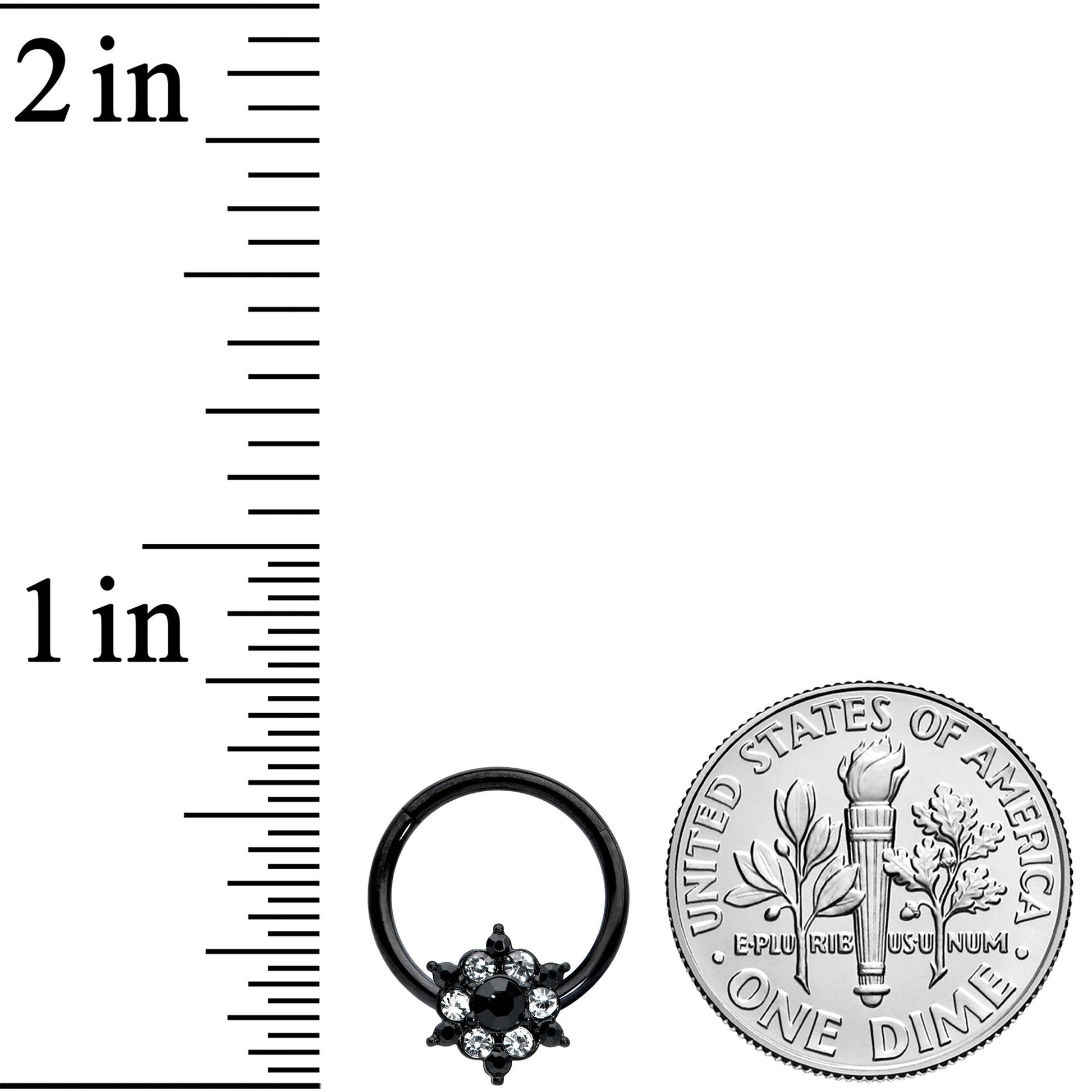 16G 3/8 Clear CZ Gem Black Abstract Sun Hinged Segment Ring