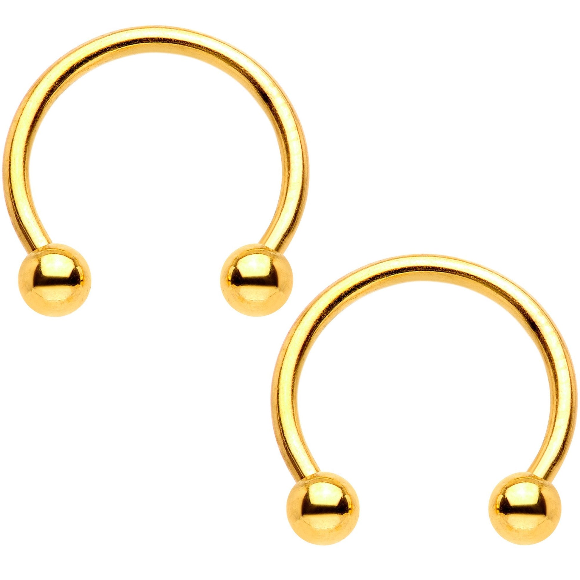 16 Gauge (1.2mm), 3/8" (10mm), Gold Tone Anodized over 316L Surgical Grade Stainless Steel Circular Rings, Gold Tone Anodized over 316L Surgical Grade Stainless Steel Horseshoe Curved Barbells, Cubic Zirconia, Sold as a set of Four