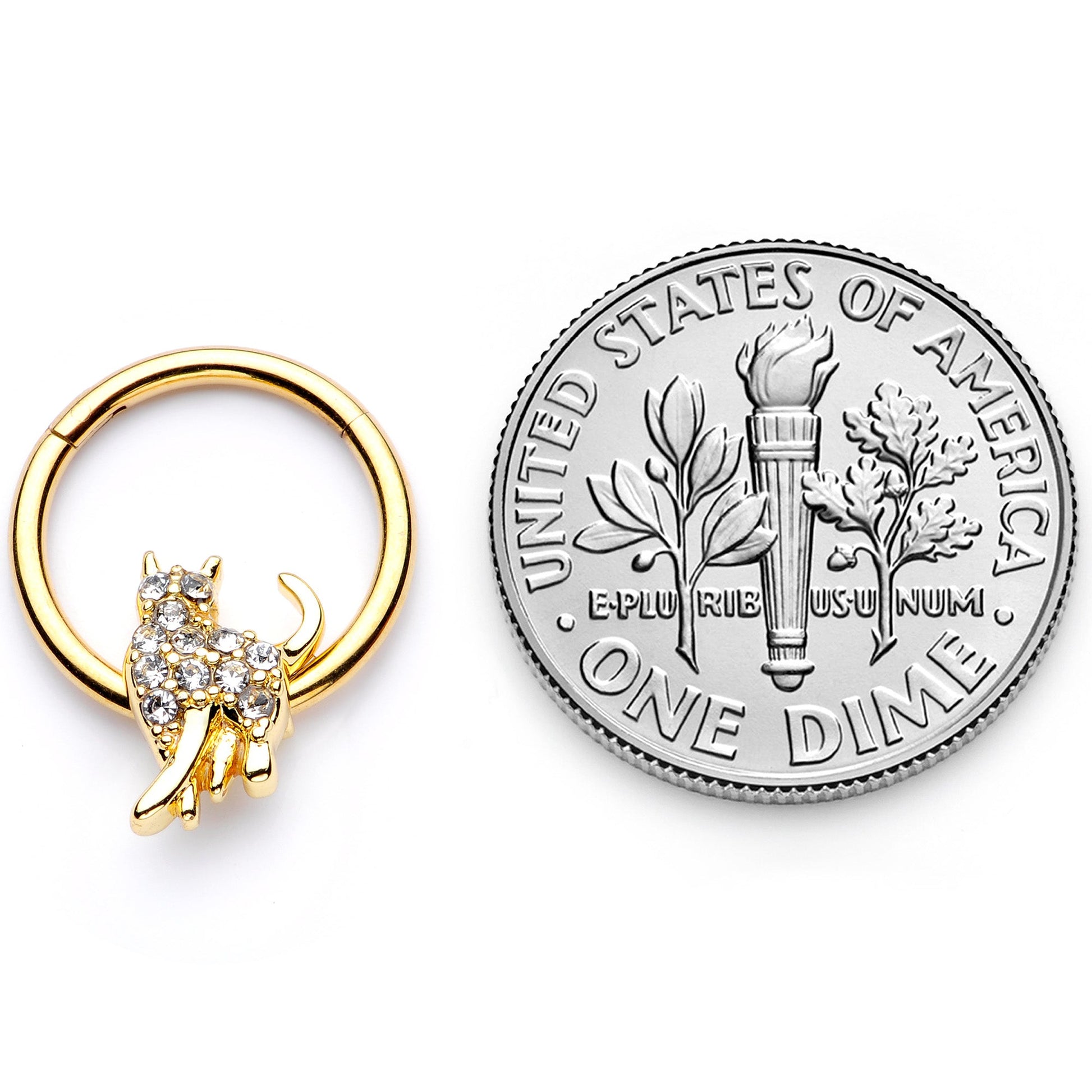 16G 3/8 Clear Gem Gold Tone Glamourpuss Cat Hinged Segment Ring