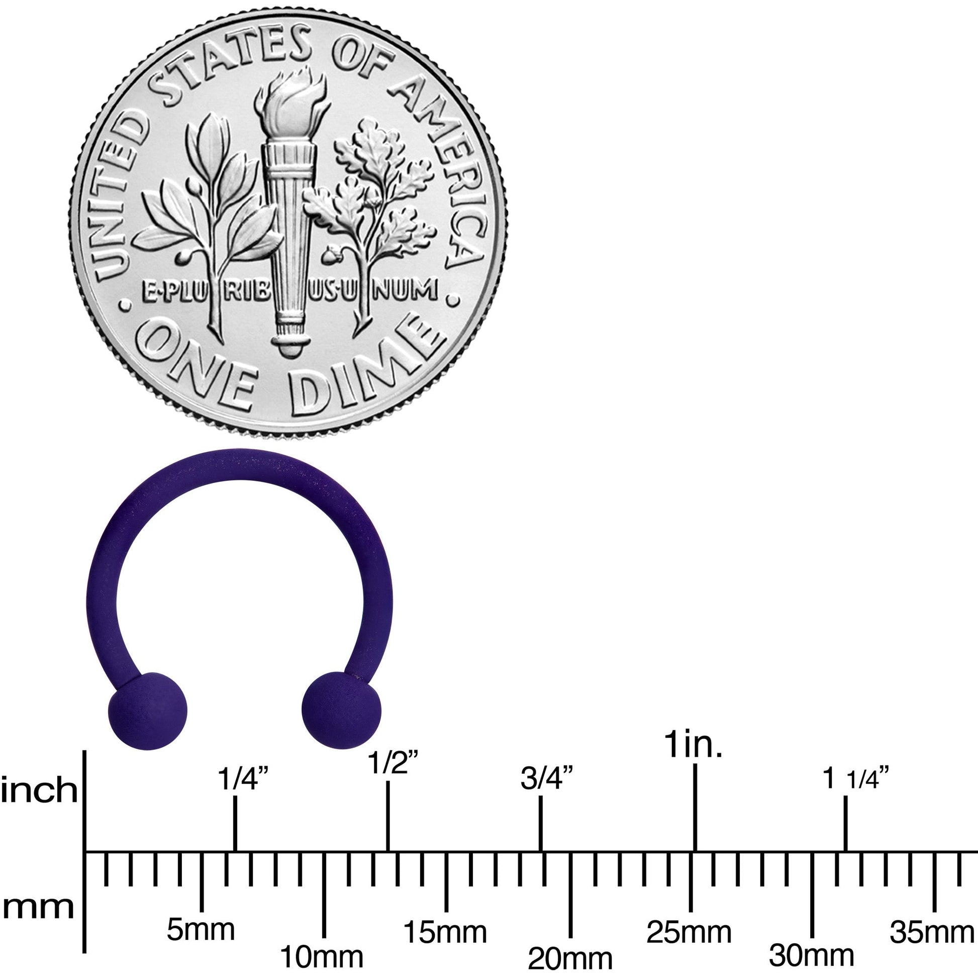 Give your cartilage piercing a touch of color with an understated effect with this 16 gauge horseshoe ring! It's made with a 10mm dark purple matte plated over 316L surgical grade stainless steel circular barbell with matching dark purple matte acrylic ball ends. You can rock this cartilage ring in multiple piercings including your septum, lip, and eyebrow as well as cartilage piercings like the helix, tragus, some conch piercings, and more. If you want a look that won't get lost in the crowd or overwhelm your style, this delightfully dark purple cartilage jewelry is exactly what you're after!Specifications