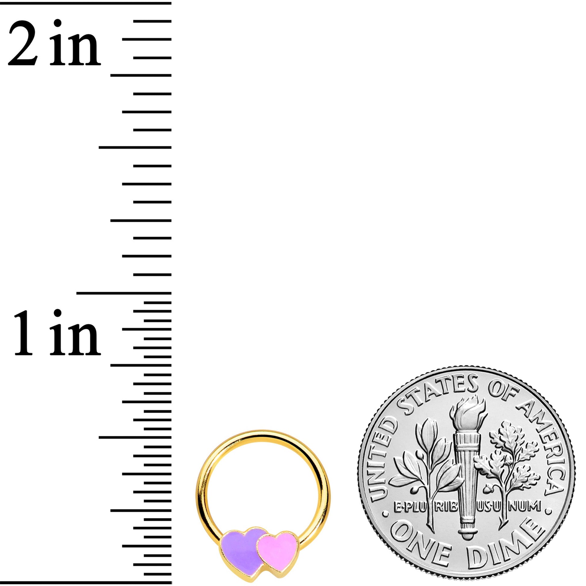16 Gauge 3/8 Gold Tone Purple Hearts BCR Captive Ring