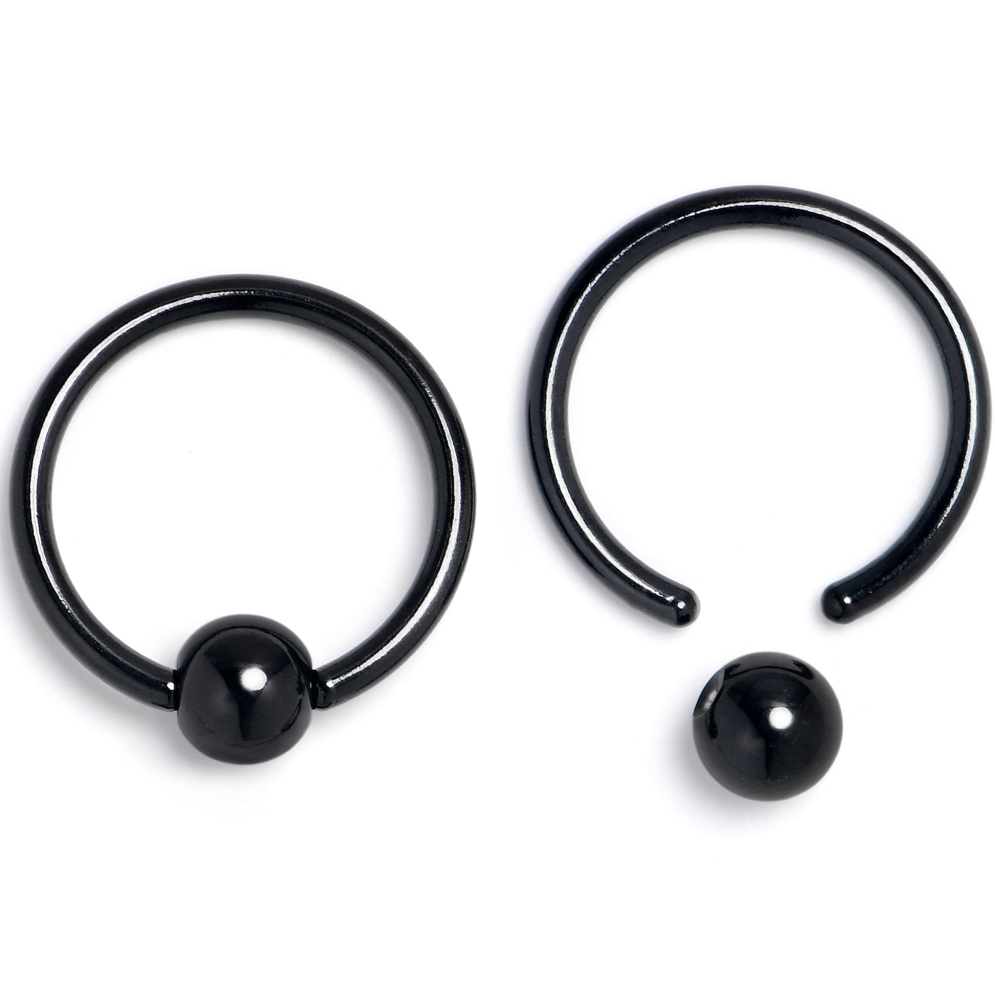 16 Gauge (1.2mm), 3/8" (10mm), Black Anodized over 316L Surgical Grade Stainless Steel Circular Barbells, Captive Closure Rings with 4mm Balls, Set of Four (4)