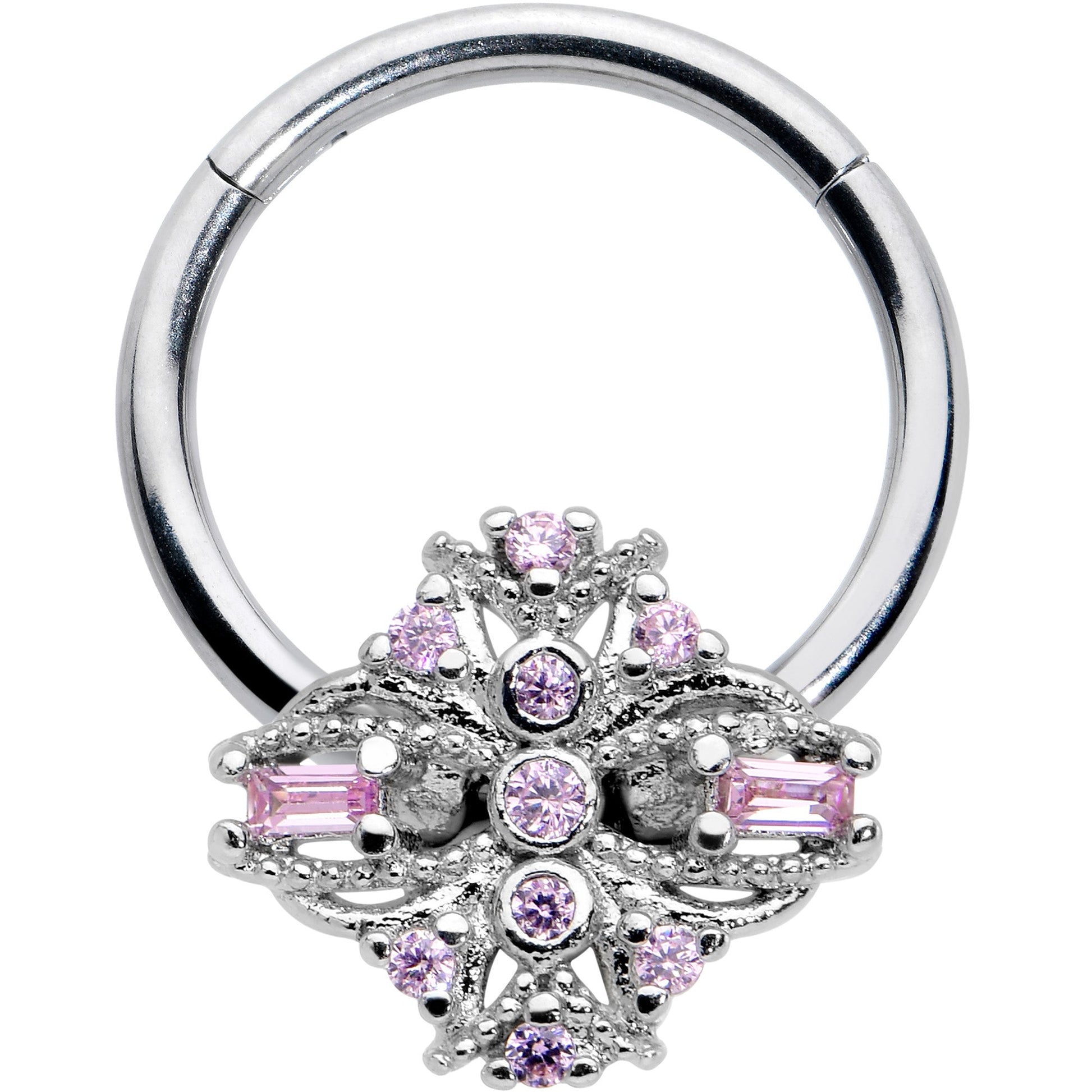 16G 3/8 Pink Gem Opulent Cross Hinged Segment Ring