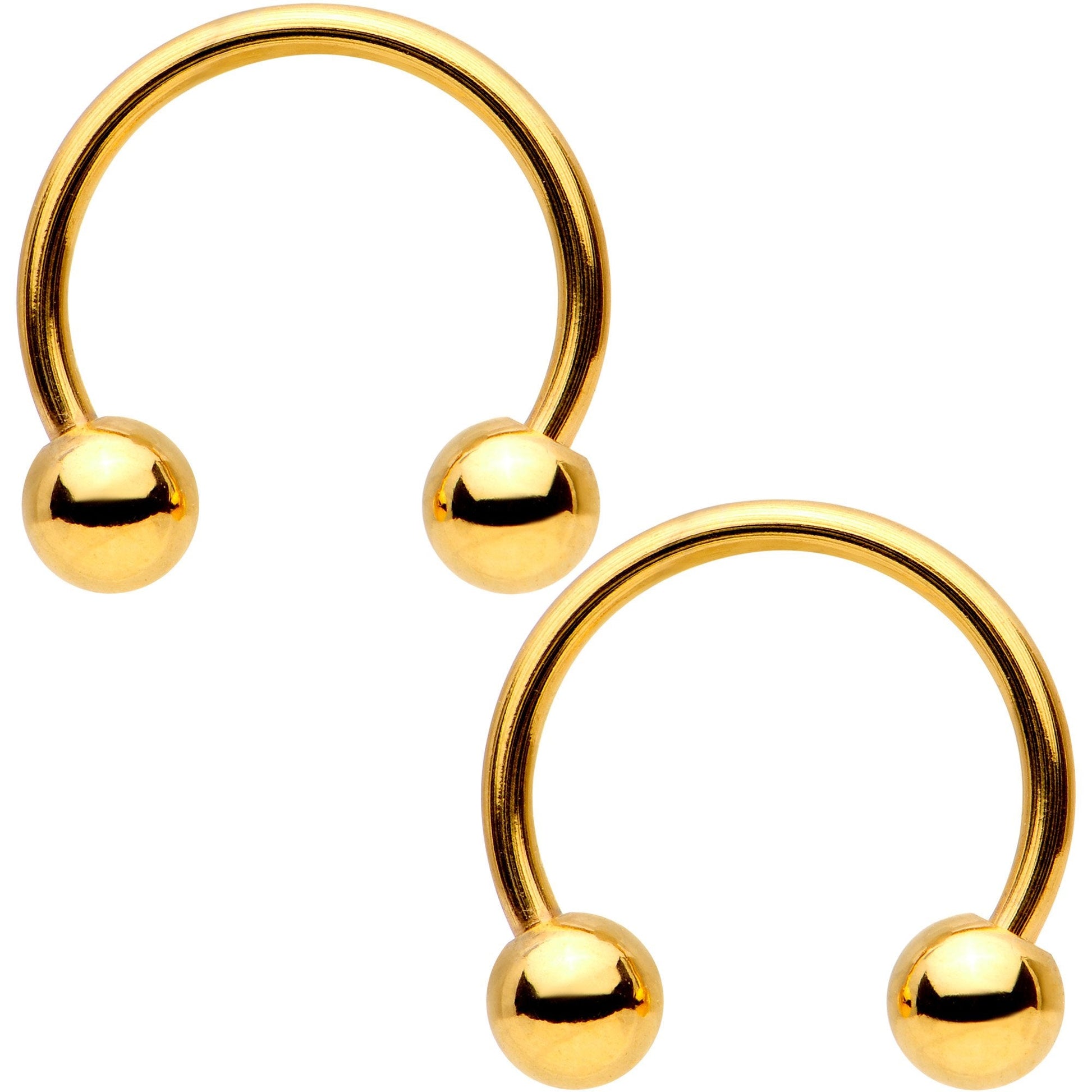 If you love options, then this pack of 8 horseshoe curved barbells is perfect for you. This set of 16 gauge horseshoe piercings features a set of two black PVD over 316L surgical grade stainless steel circular barbells, two rainbow PVD over 316L surgical grade stainless steel circular barbells, two gold PVD over 316L surgical grade stainless steel circular barbells, and two 316L surgical grade stainless steel circular barbells. The multi color horseshoe earrings are all 10mm in length. This horseshoe jewelry can be worn in a variety of piercings including cartilage, eyebrow, lip piercings, and more and will always look fashion-forward.