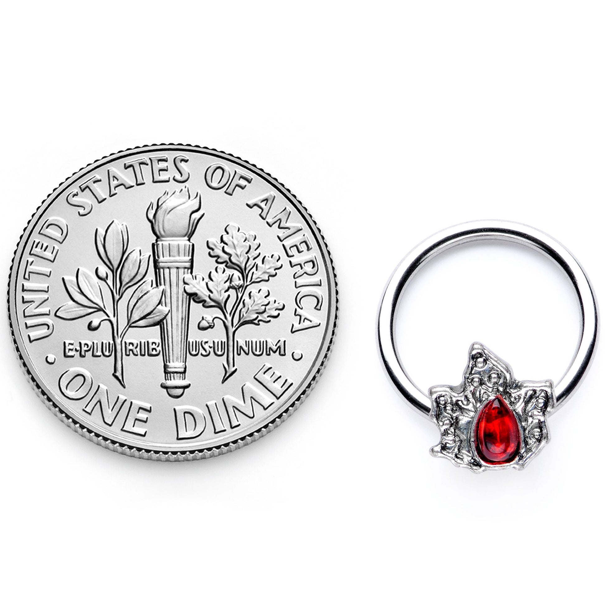 Put some holly in your holiday season with this 16 gauge cartilage jewelry! It's made with a 10mm durable 316L surgical grade stainless steel circular ring. The captive bead is a holly leaf charm with textured detailing a large red gem for a luscious pop of Christmas color. And it works beautifully in multiple piercings including cartilage piercings like the tragus, helix, daith and even septum piercings too! You're sure to have a happy holly-day when you're wearing something this beautiful!Specifications