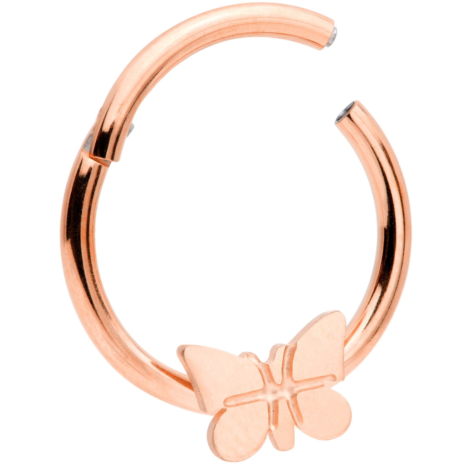 16G 3/8 Rose Gold Tone Spring Butterfly Hinged Segment Ring