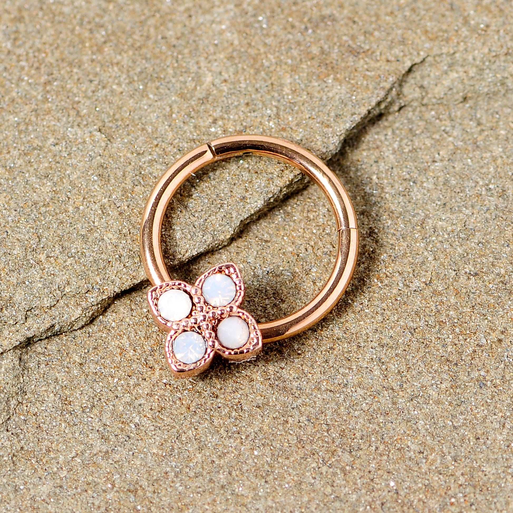 16G 3/8 White Faux Opal Rose Gold Tone Regal Hinged Segment Ring