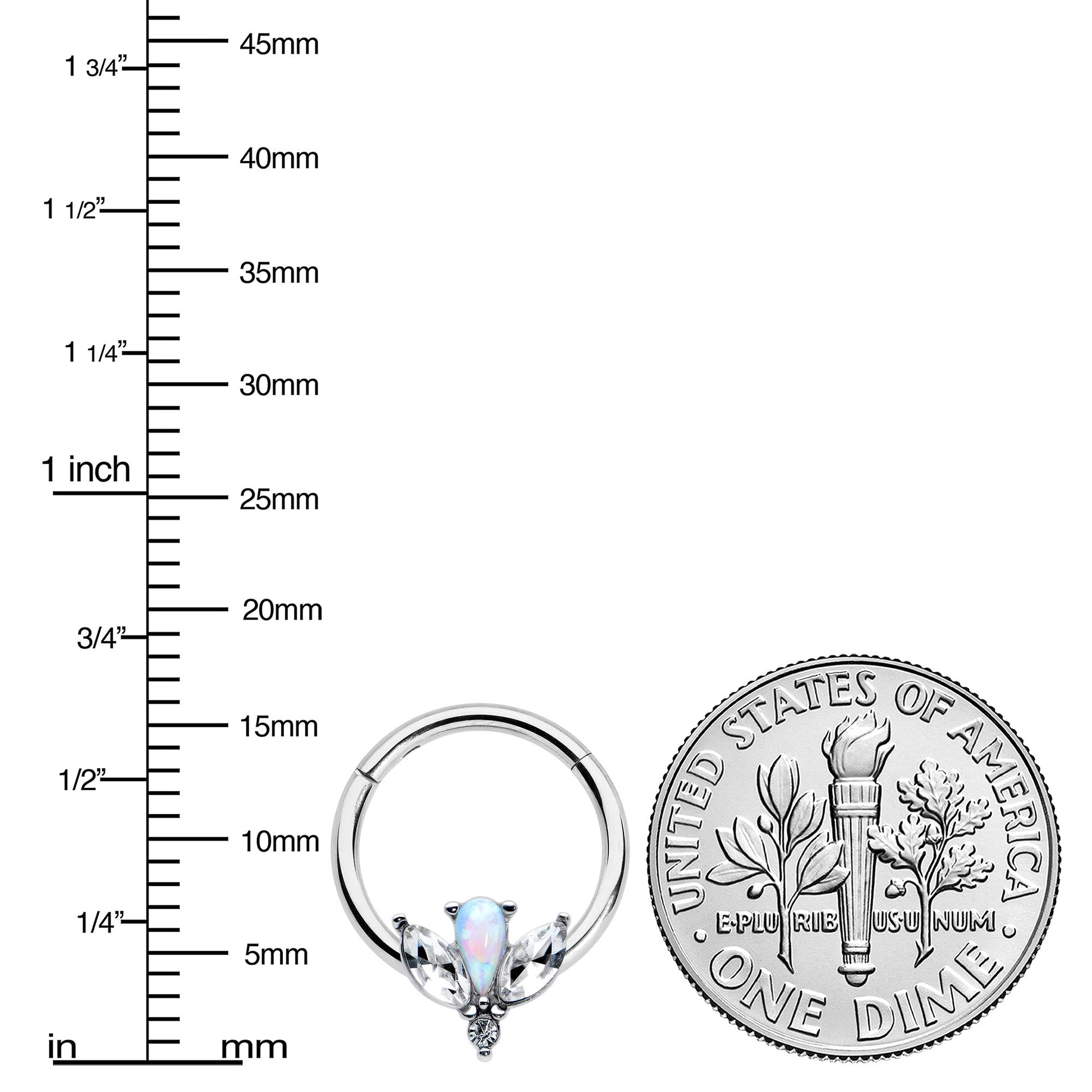 16 Gauge (1.2mm), 3/8" (10mm), 316L Surgical Grade Stainless Steel Hinged Circular Ring, Faux Opal