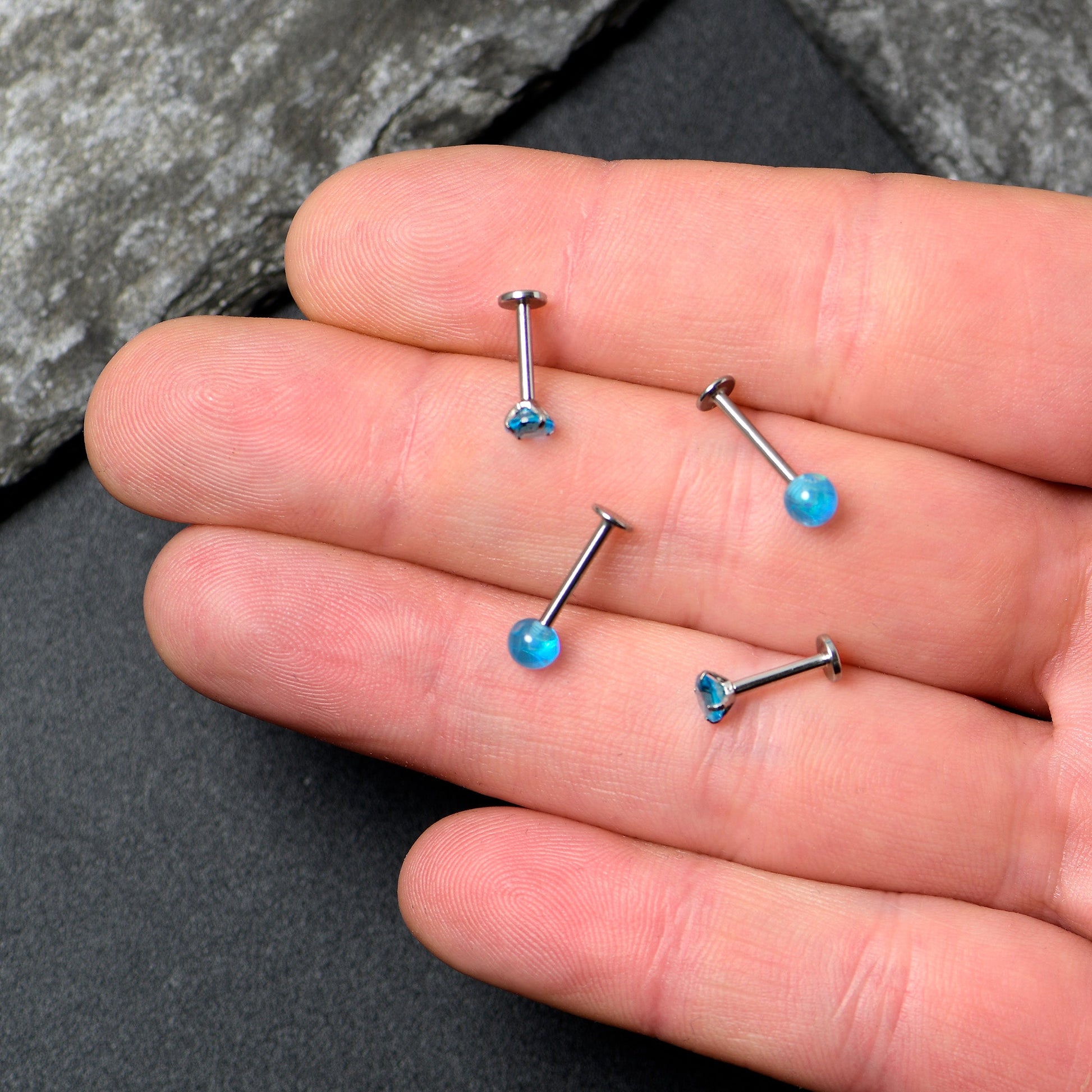 16 Gauge 5/16 3/8 Blue Gem Faux Opal Labret Monroe Tragus Set of 4