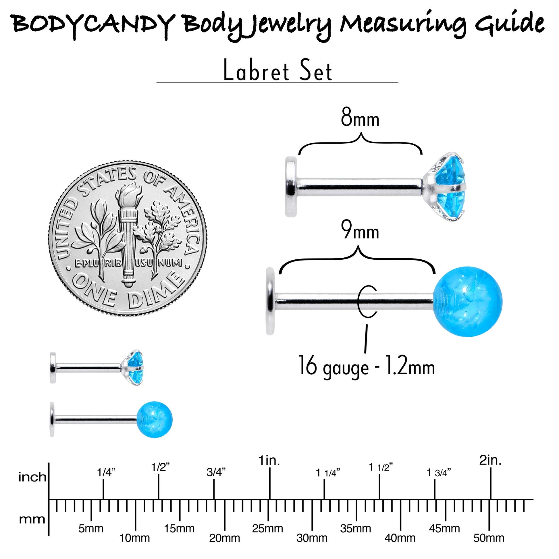 16G 5/16 3/8 Blue Gem Faux Opal Labret Monroe Tragus Set of 4