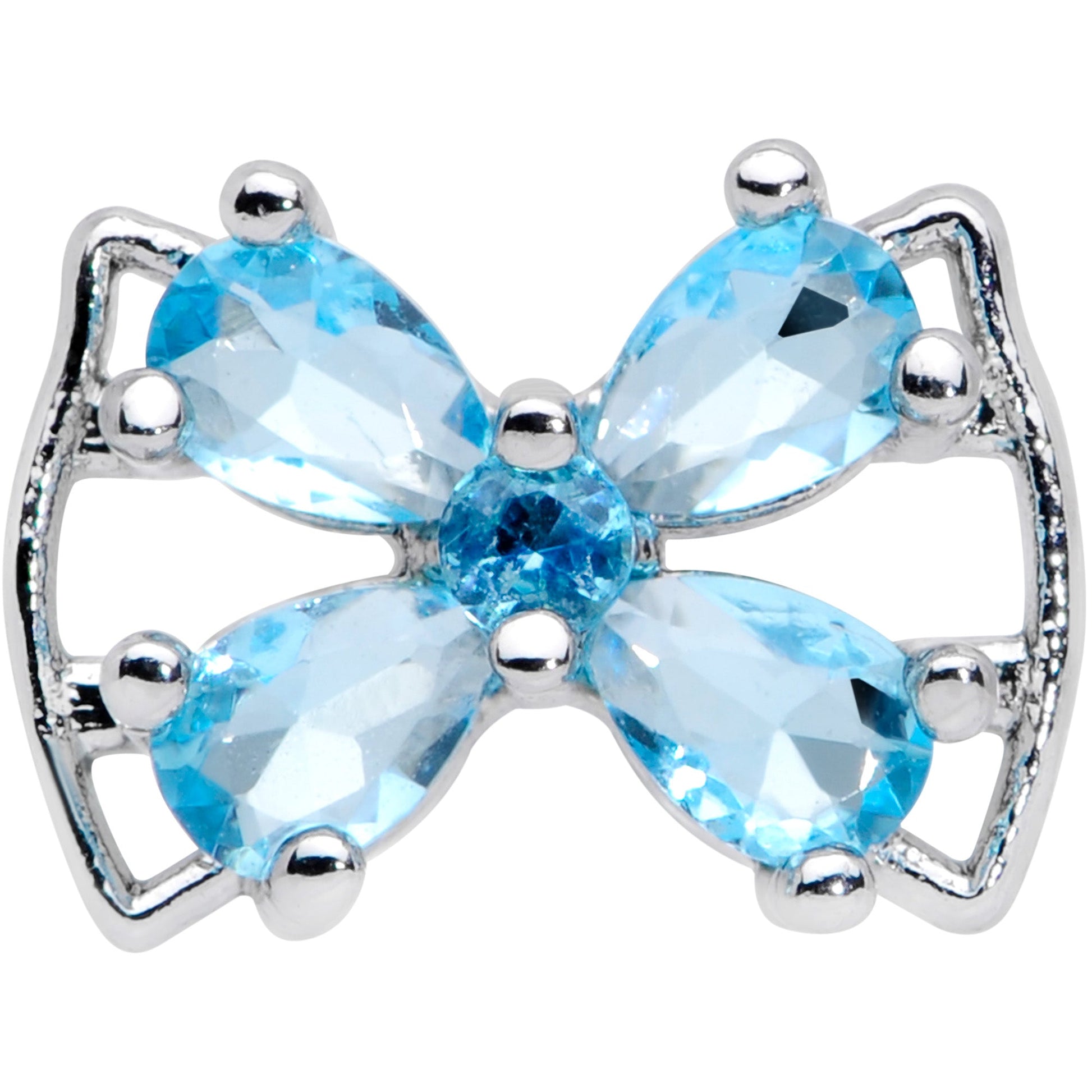 16 Gauge 5/16 Aqua CZ Gem Beauty Bow Labret Monroe Tragus