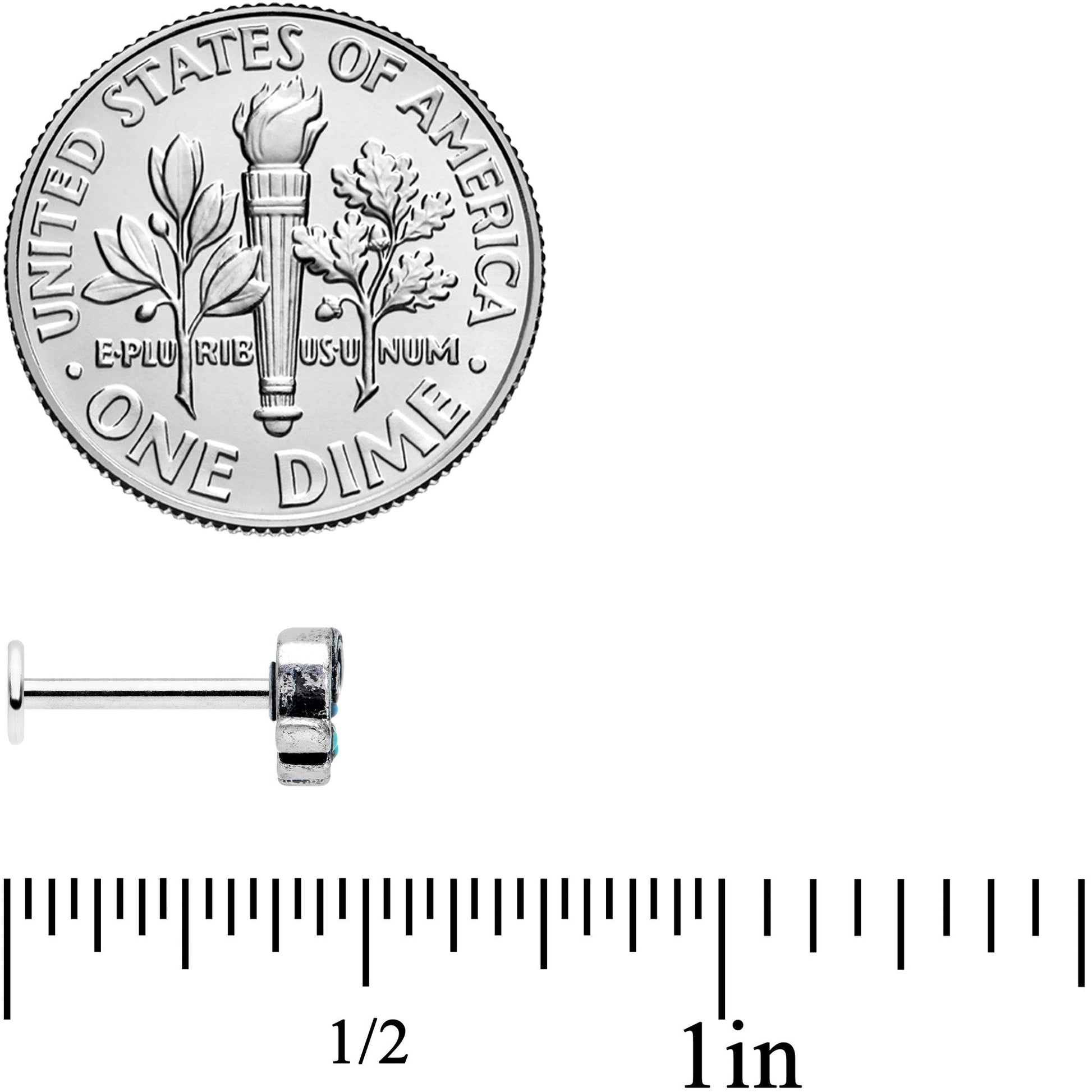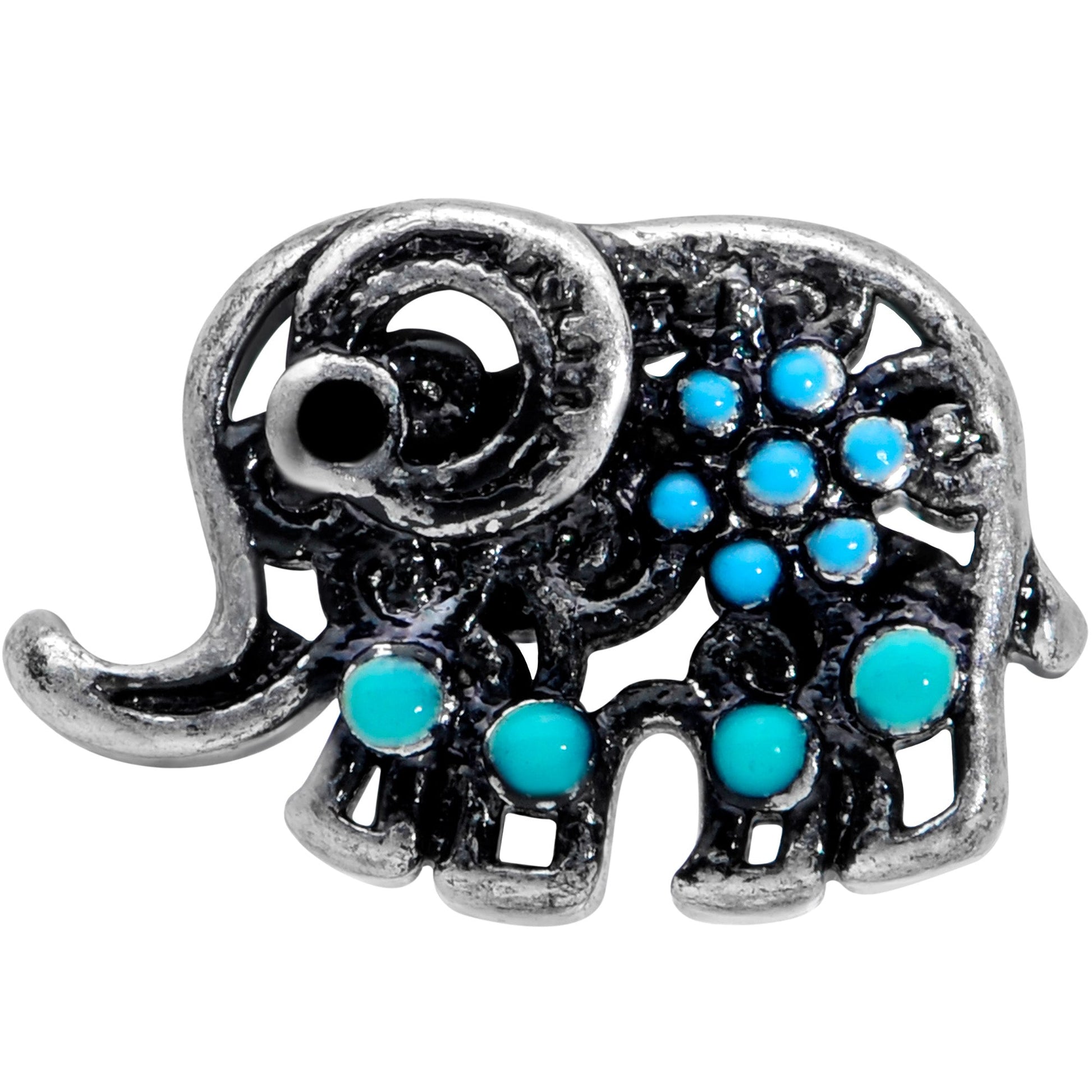 This elephant wants to bring its curvy and colorful style to your cartilage piercing on this 16 gauge lip ring! It's made with an 8mm durable 316L surgical grade stainless steel straight barbell with a flat disc end. It features our adorable elephant charm with rounded lines, curled trunk and circular ears. The elephant is further embellished with aqua color orbs for a lovely splash of color. Best of all, this elephant can hang out in multiple piercings including labret, monroe, tragus, helix, and some conch piercings. They say that elephants never forget and you're sure to remember this colorful curvy elephant cartilage jewelry!Specifications