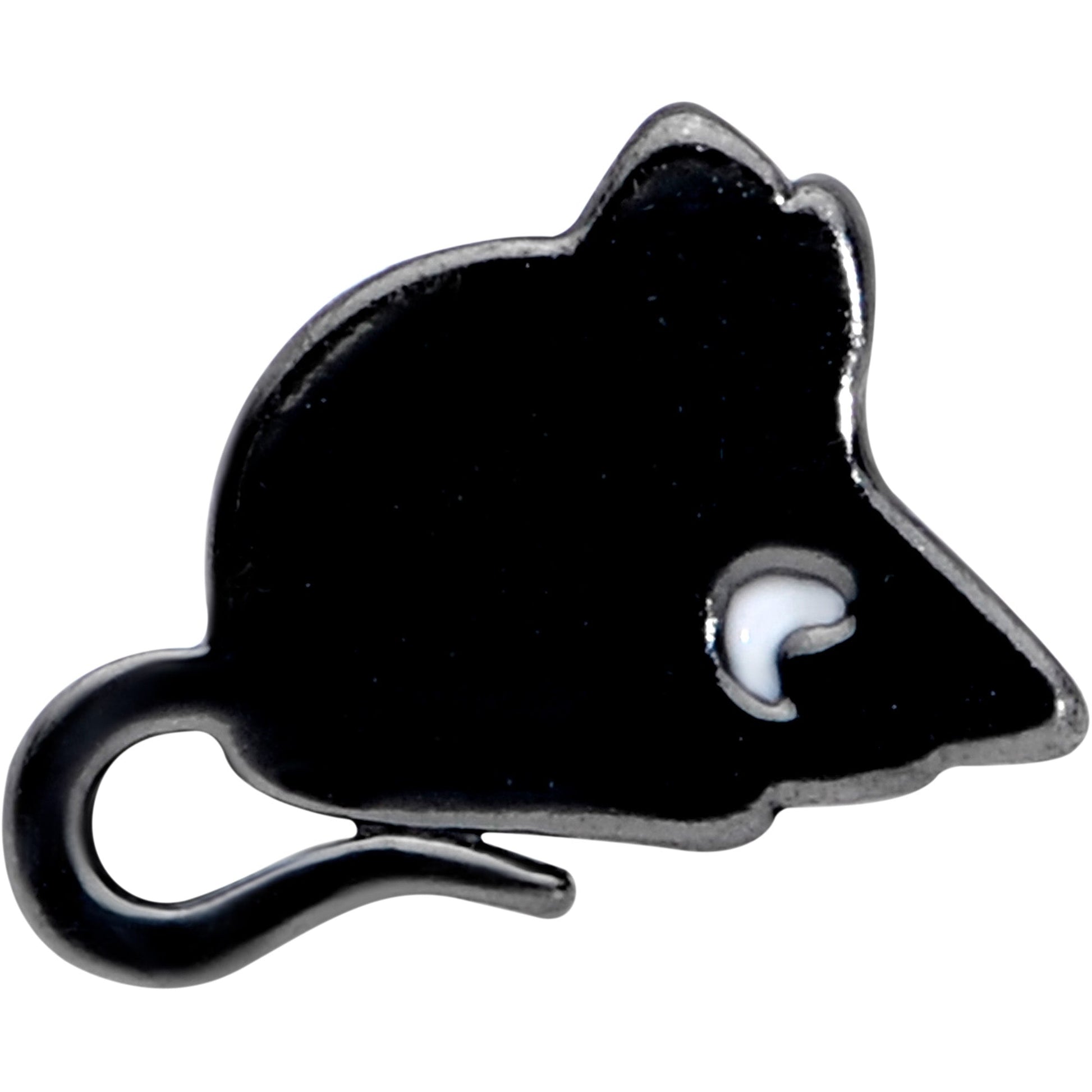 Even if mice normally make you want to call an exterminator, the mouse on this 16 gauge lip ring will make you want to invite it into your home....and piercings! It's made with an 8mm black PVD over 316L surgical grade stainless steel straight barbell with a flat disc end. The front features a black mouse charm. This cartilage stud works well in multiple piercings including your lip and monroe as well as piercings like the tragus, helix, and some conch piercings. This resplendent rodent is sure to trap your heart with this marvelous mouse-themed body piercing jewelry!Specifications