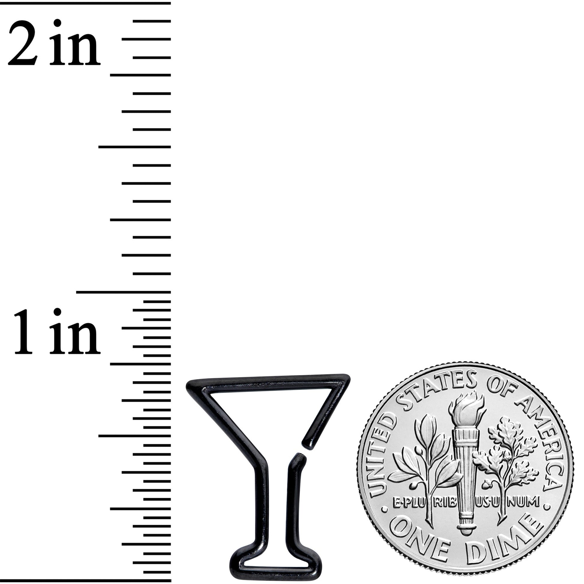 Make every hour a happy hour with this 16 gauge cartilage earring! It's made with 8mm black PVD over 316L surgical grade stainless steel and features the unmistakable shape of the classic martini glass. This cartilage piercing is super easy to insert and remove - simply twist the ring open, insert, and then twist gently shut again. You'll love this cartilage earring because this works so well in multiple piercings including ear piercings like the rook, daith, tragus, and helix. You'll never have sour grapes about wearing this in your cartilage piercings!Specifications