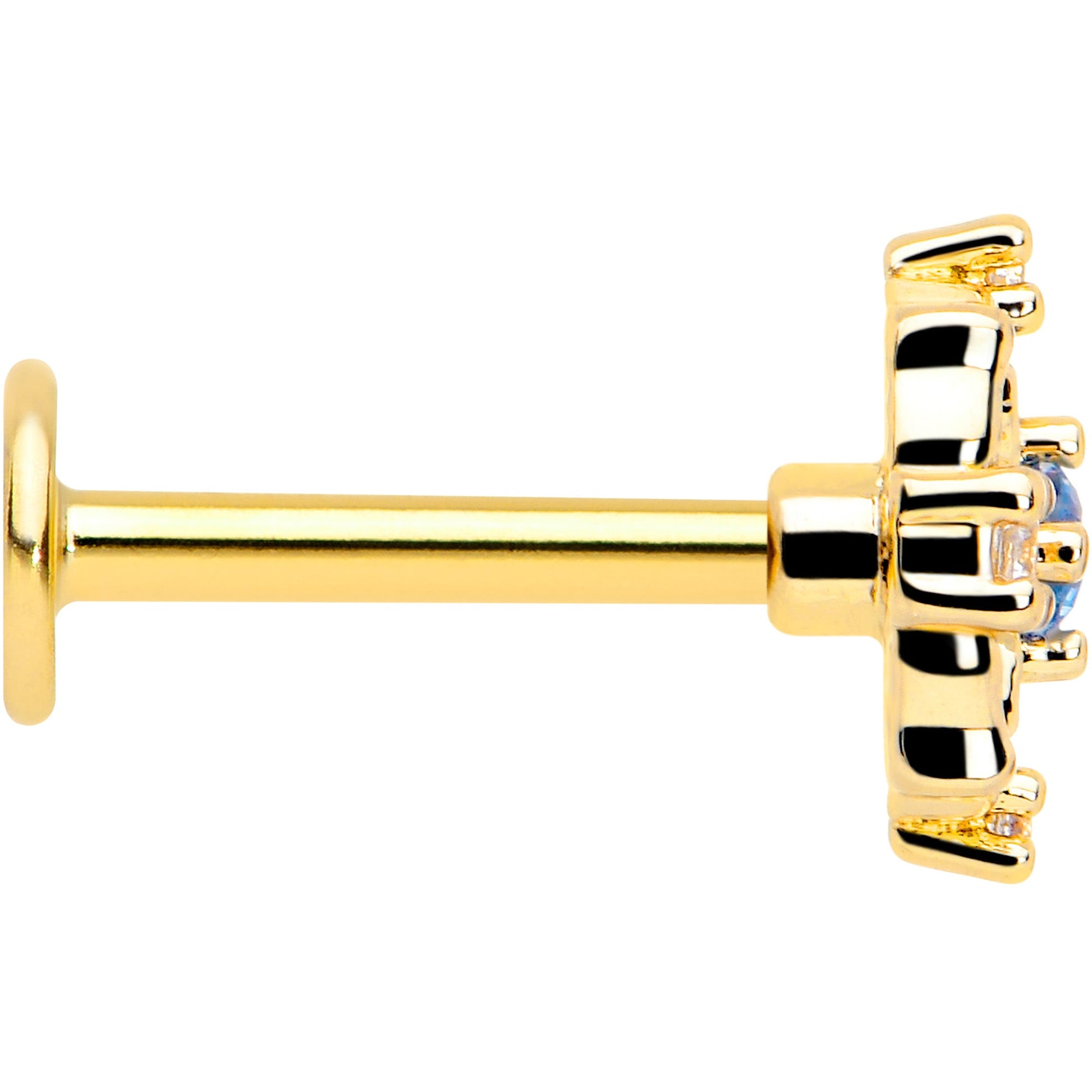 16G 5/16 Blue CZ Gem Gold Tone Flower Ring Labret Monroe Tragus