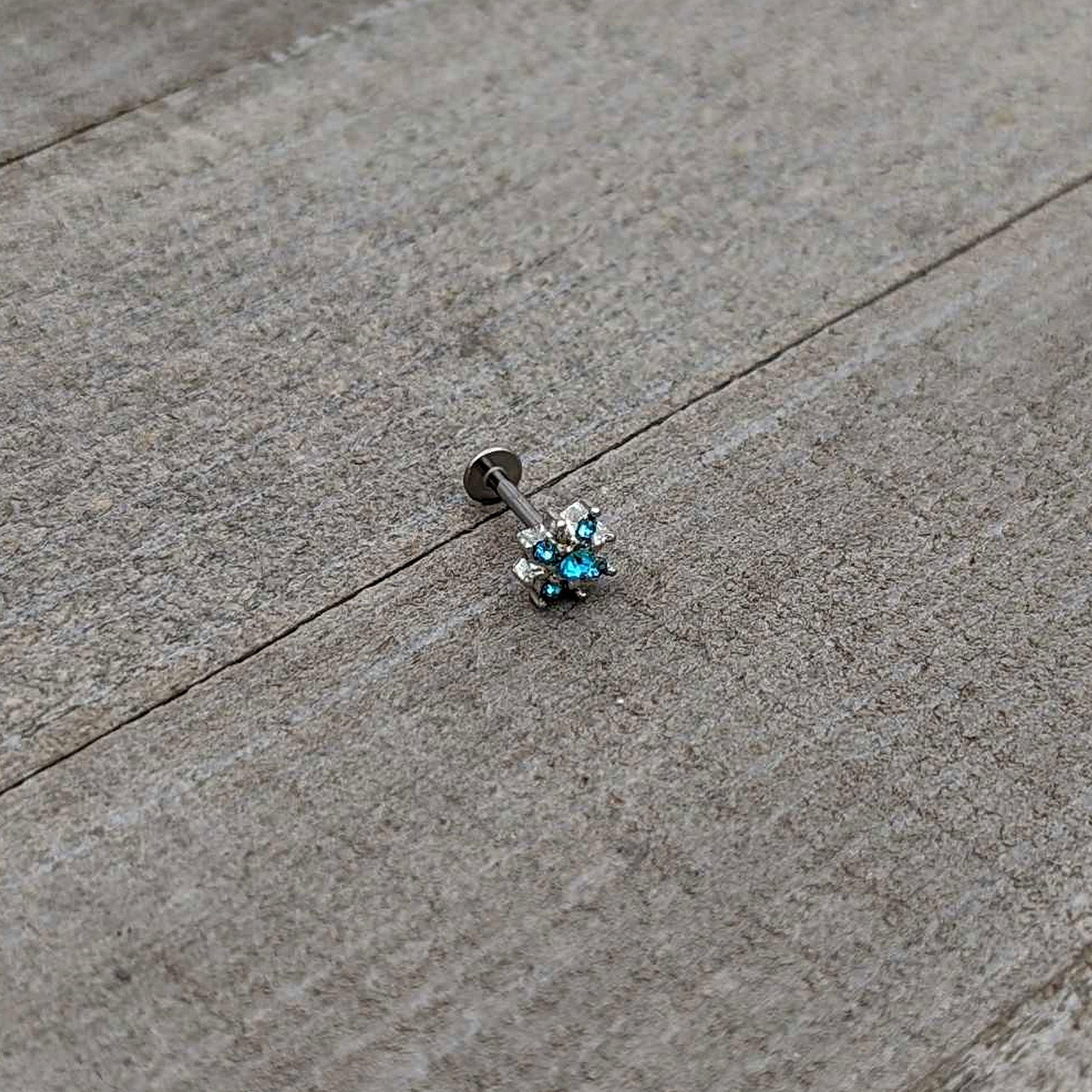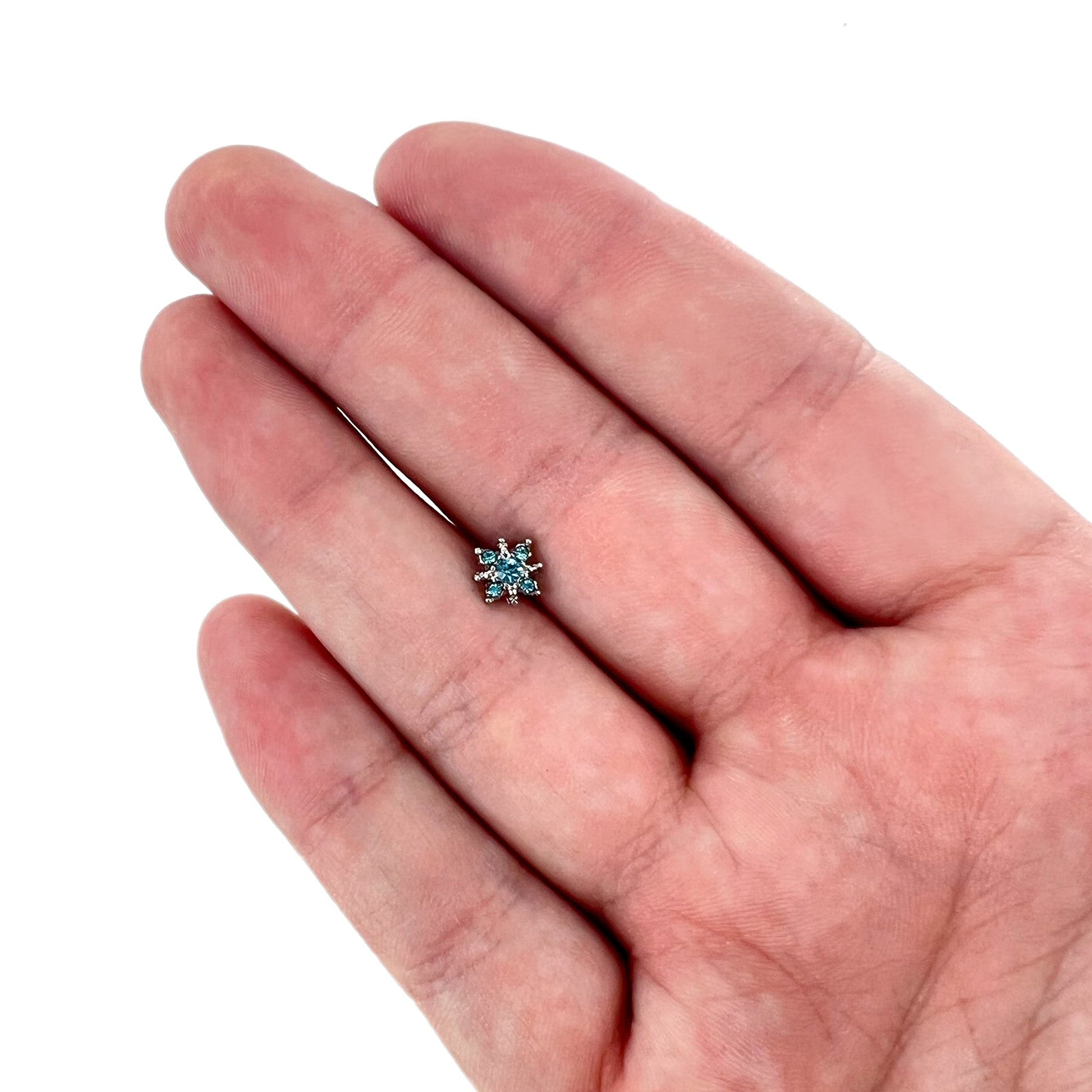 16 Gauge 5/16 Blue Gem Stylish Snowflake Labret Monroe Tragus