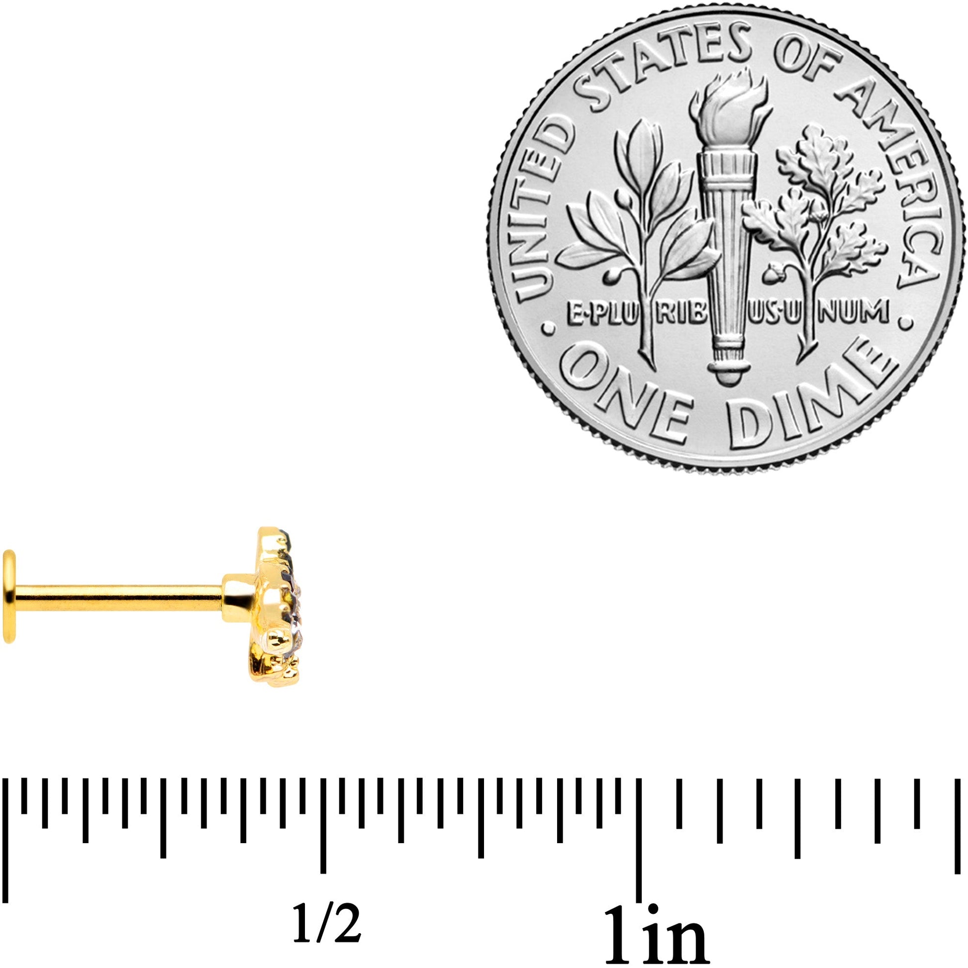 16 Gauge 5/16 Clear Black Gem Gold Tone Dinosaur Labret Monroe Tragus