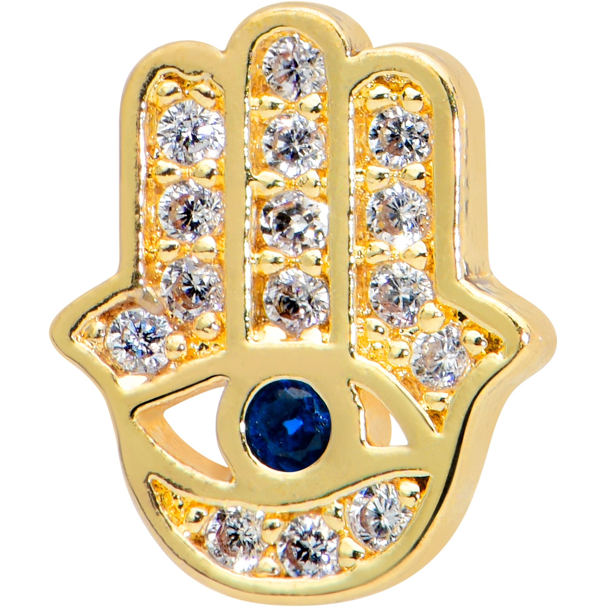 16 Gauge 5/16 Clear Blue Gem Gold Tone Eye Hamsa Labret Monroe Tragus