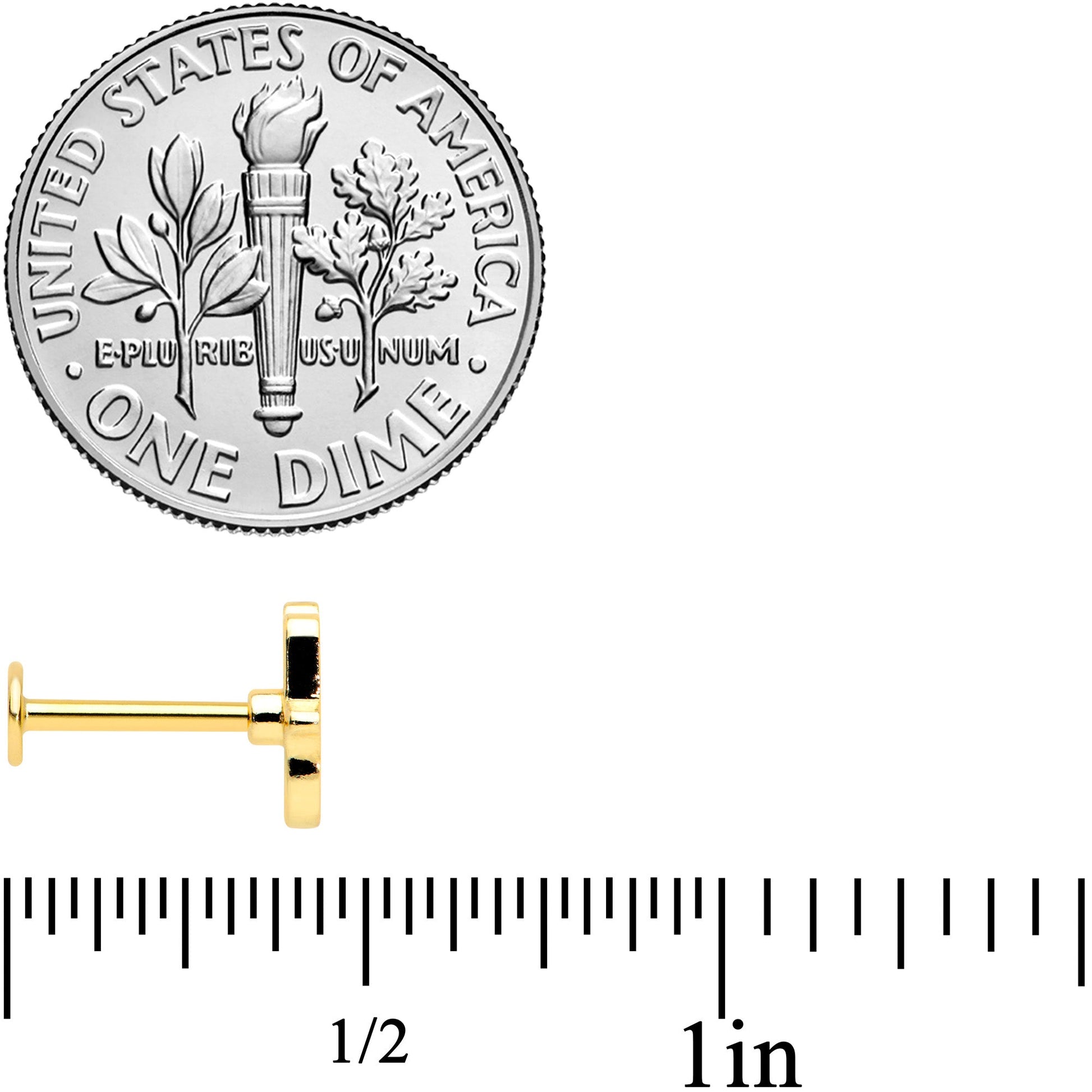 16 Gauge (1.2mm), 5/16" (8mm), Gold Tone Plated over 316L Surgical Grade Stainless Steel Straight Barbell