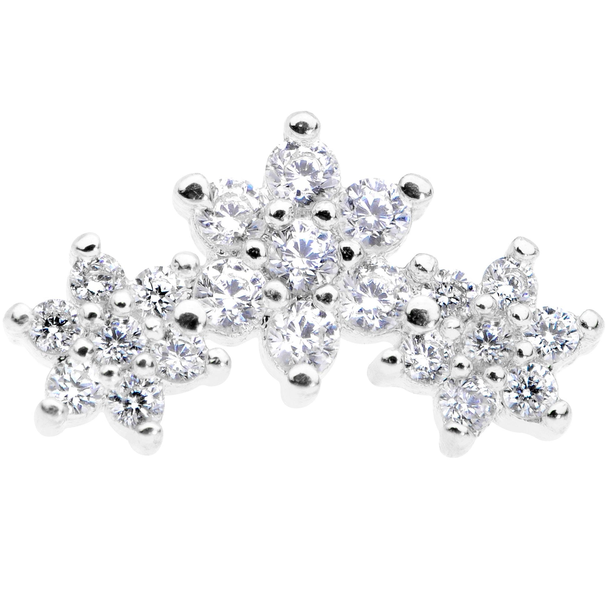 Whether you're starry-eyed for spring or just feeling floral, this 16 gauge cartilage earring has you covered! Made with an 8mm durable 316L surgical grade stainless steel straight barbell, it has a 3mm ball end. The front features a trio of flower-inspired clusters, each one encrusted with clear cubic zirconia gems for a look that is both sophisticated and lavish. This earring works in multiple piercings including the tragus, and helix. It's sure to be the star of your body jewelry collection!Specifications