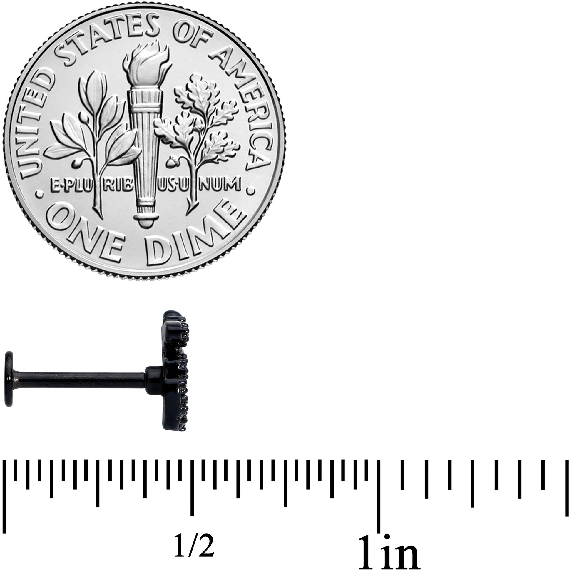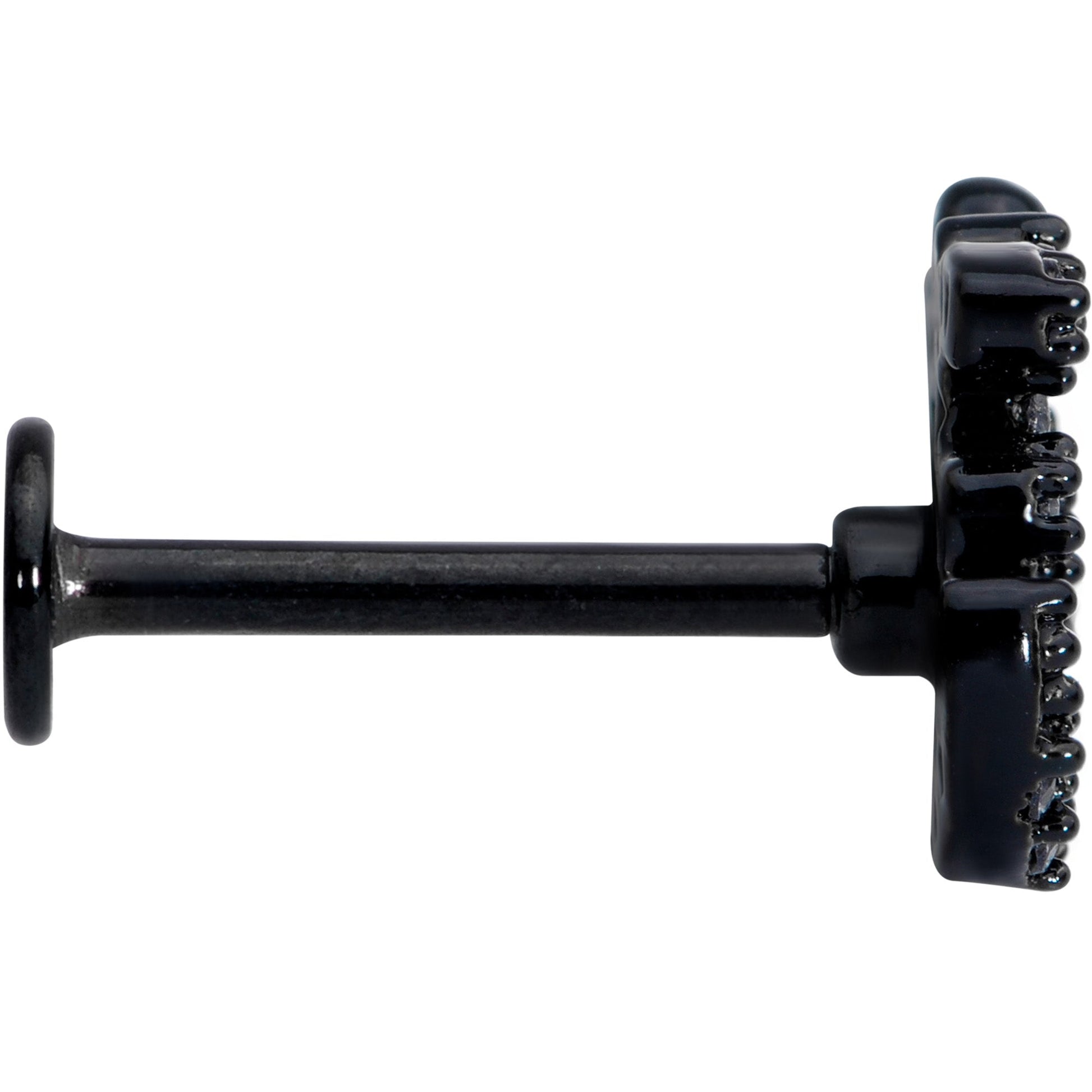 Om my goodness, that 16 gauge lip ring looks gorgeous! It's made with an 8mm black PVD over 316L surgical grade stainless steel straight barbell with a flat disc end. It features a charm of the Indian word OM. The om is completely paved in small clear cubic zirconia gems, giving it a look that mixes the spiritual with the sumptuous. And you can show it off in multiple piercings including your lip, monroe, and cartilage piercings like the tragus, and helix, some conch piercings. Whether you'd rather relax in a spa or a yoga studio, you can be sure your cartilage piercing looks om-mazing!Specifications