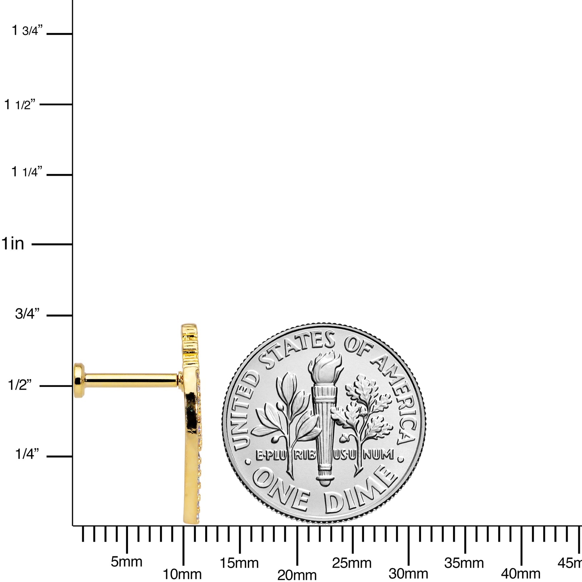 There are wild curves ahead when you're wearing this 16 gauge cartilage jewelry! It's made with an 8mm gold tone plated over 316L surgical grade stainless steel straight barbell with a flat disc end. The top end features an elegantly understated charm of a double arc, paved with clear cubic zirconia gems. The top end is internally threaded to make insertion and removal incredibly comfortable. Not only does this cartilage ring have a classic style and a structured look, but you can also wear it in multiple piercings including labret, monroe, tragus, helix, and some conch piercings! Give your cartilage piercing a comfortable fit and a look that will never go out of style with this classic curve cartilage jewelry.