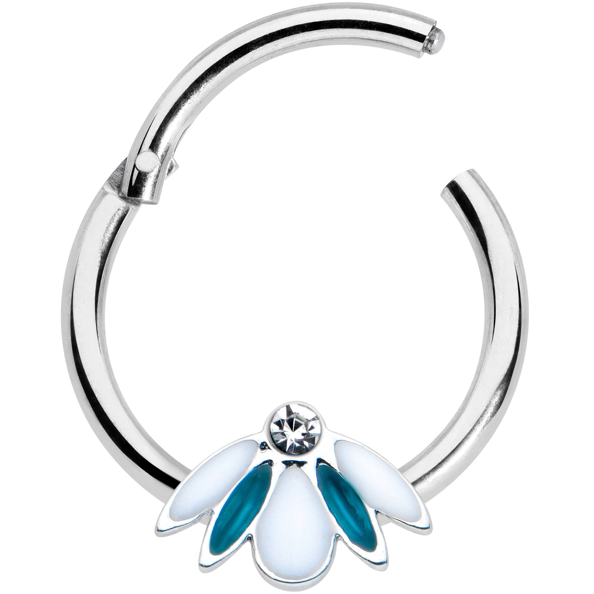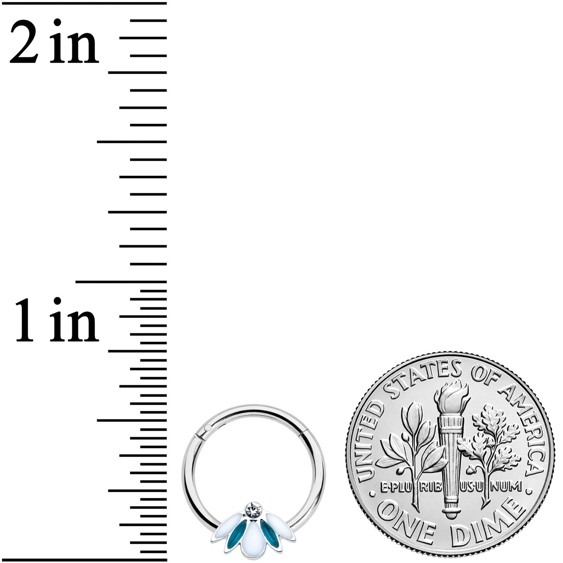 16G 5/16 Clear Gem Blue White Leaves Hinged Segment Ring