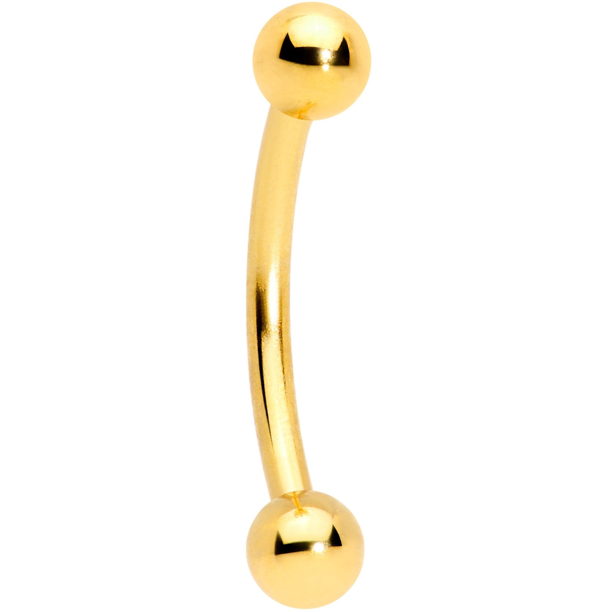16 Gauge (1.2mm), 5/16" (8mm), Gold Tone Anodized over 316L Surgical Grade Stainless Steel Curved Barbells, 3mm Ball Ends, Sold as a Set of 4