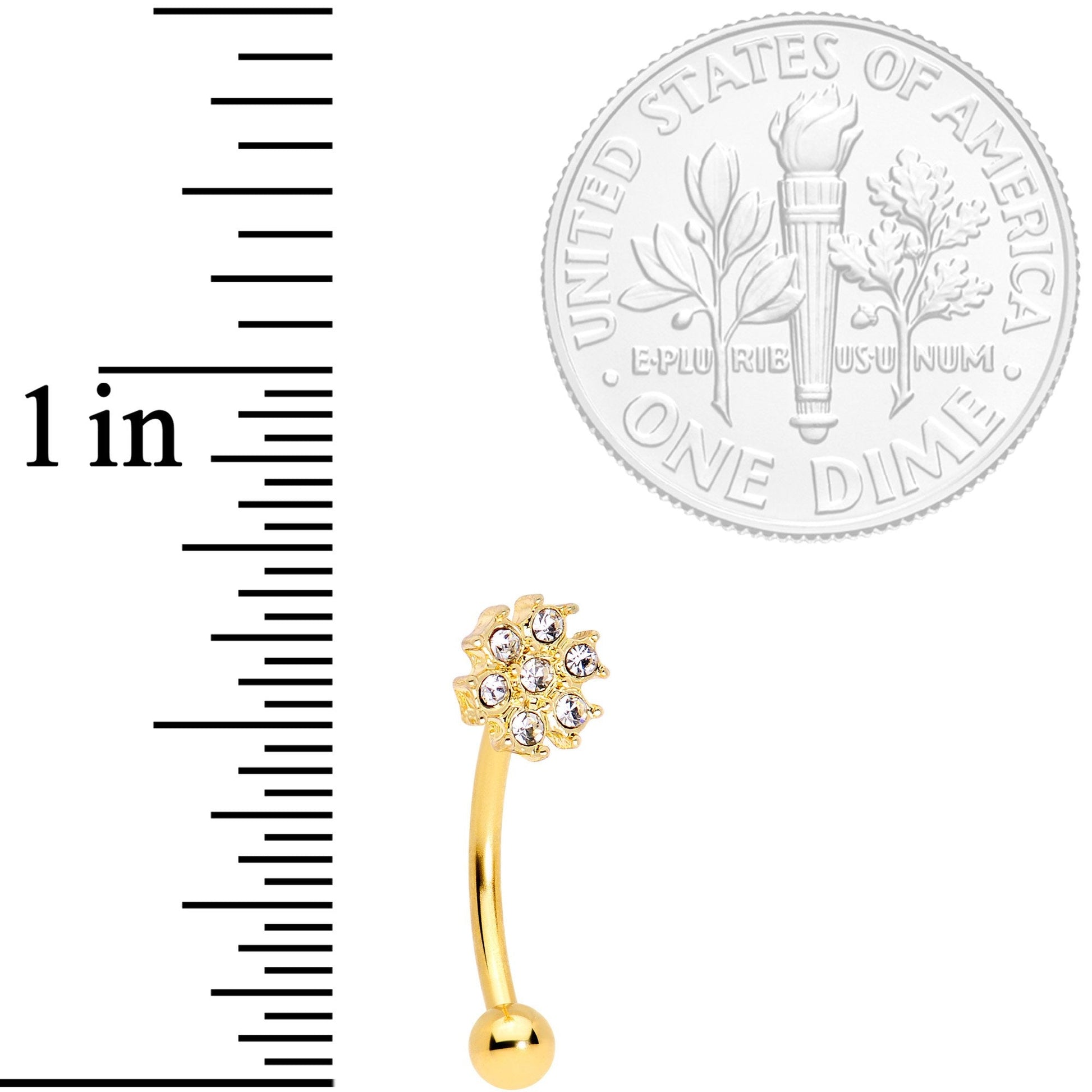 16 Gauge 5/16" Clear Gem Flower Gold Tone Curved Eyebrow Ring Set of 4