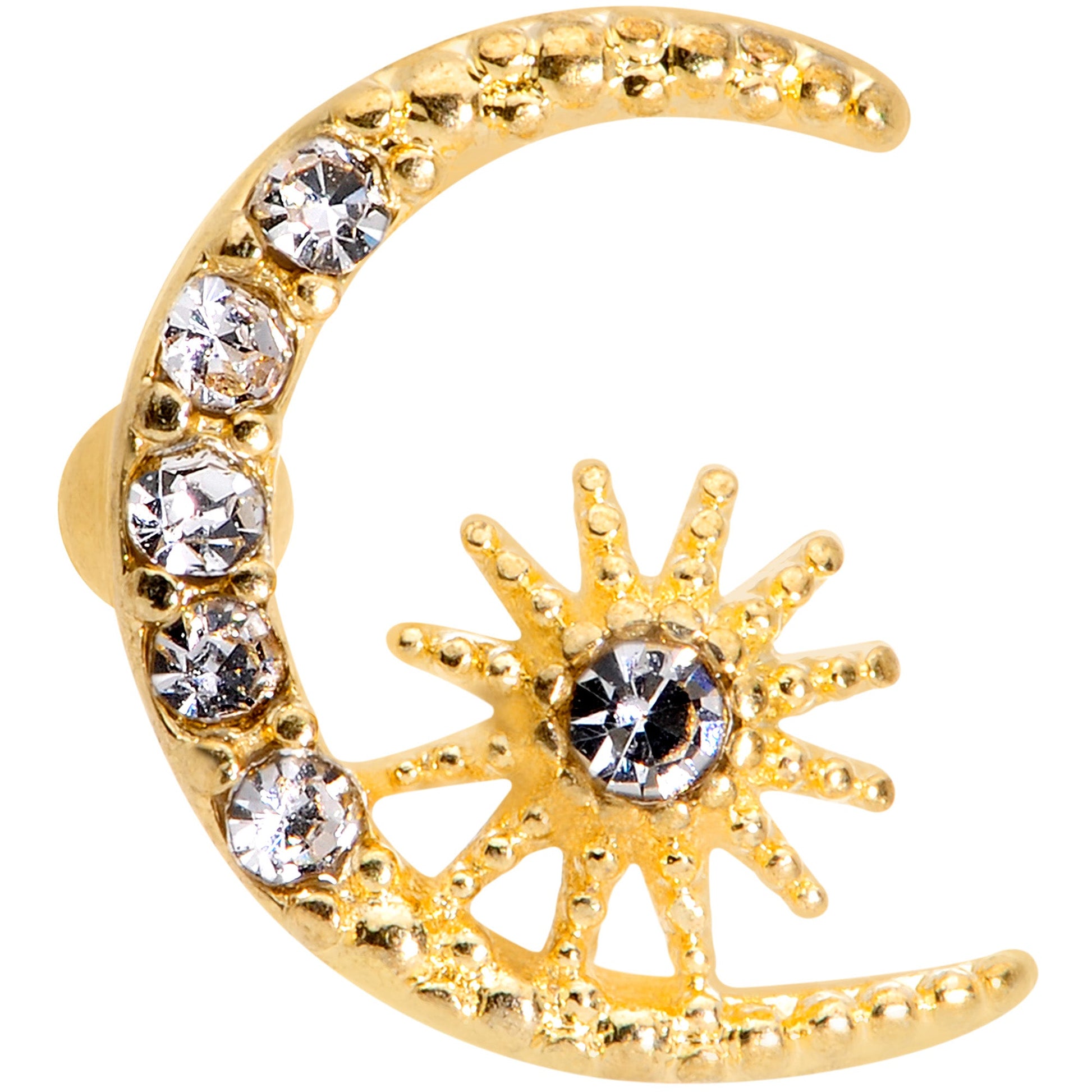 16G 5/16 Clear Gem Gold Tone Crescent Moon Star Cartilage Tragus
