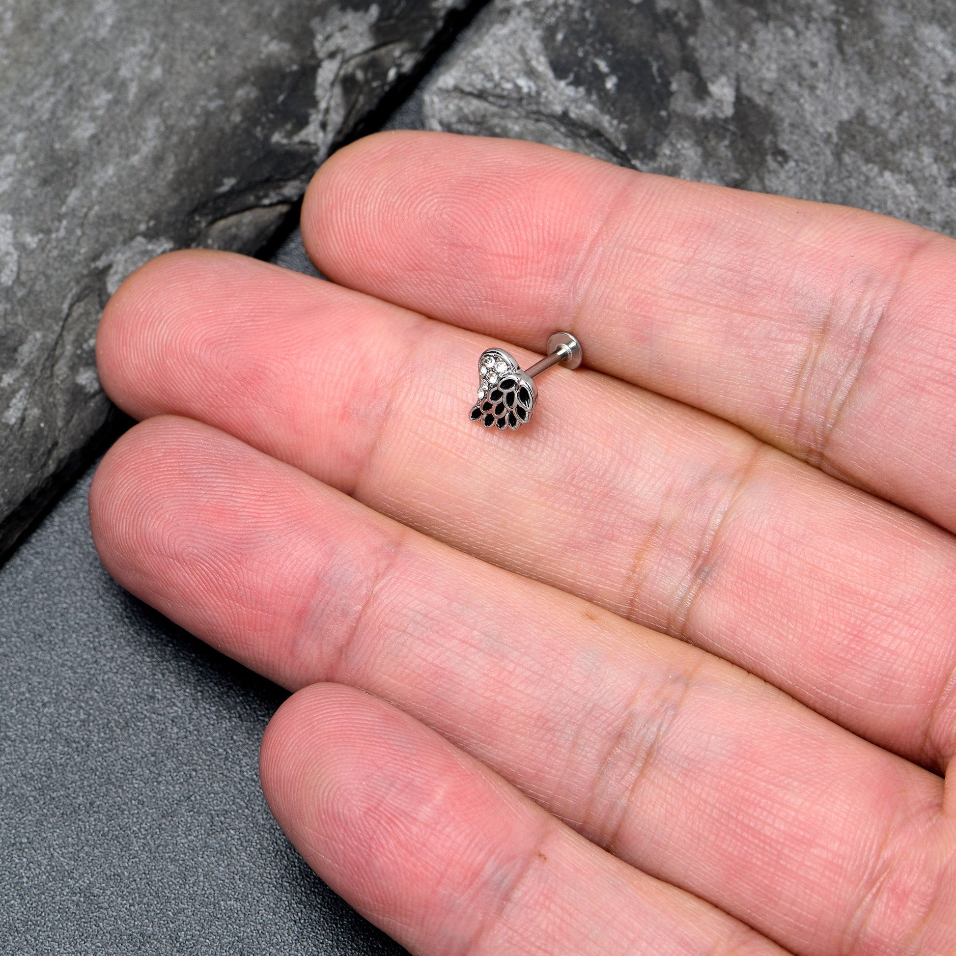 16 Gauge 5/16 Clear Gem Heavenly Heart Angel Wing Black Labret Tragus