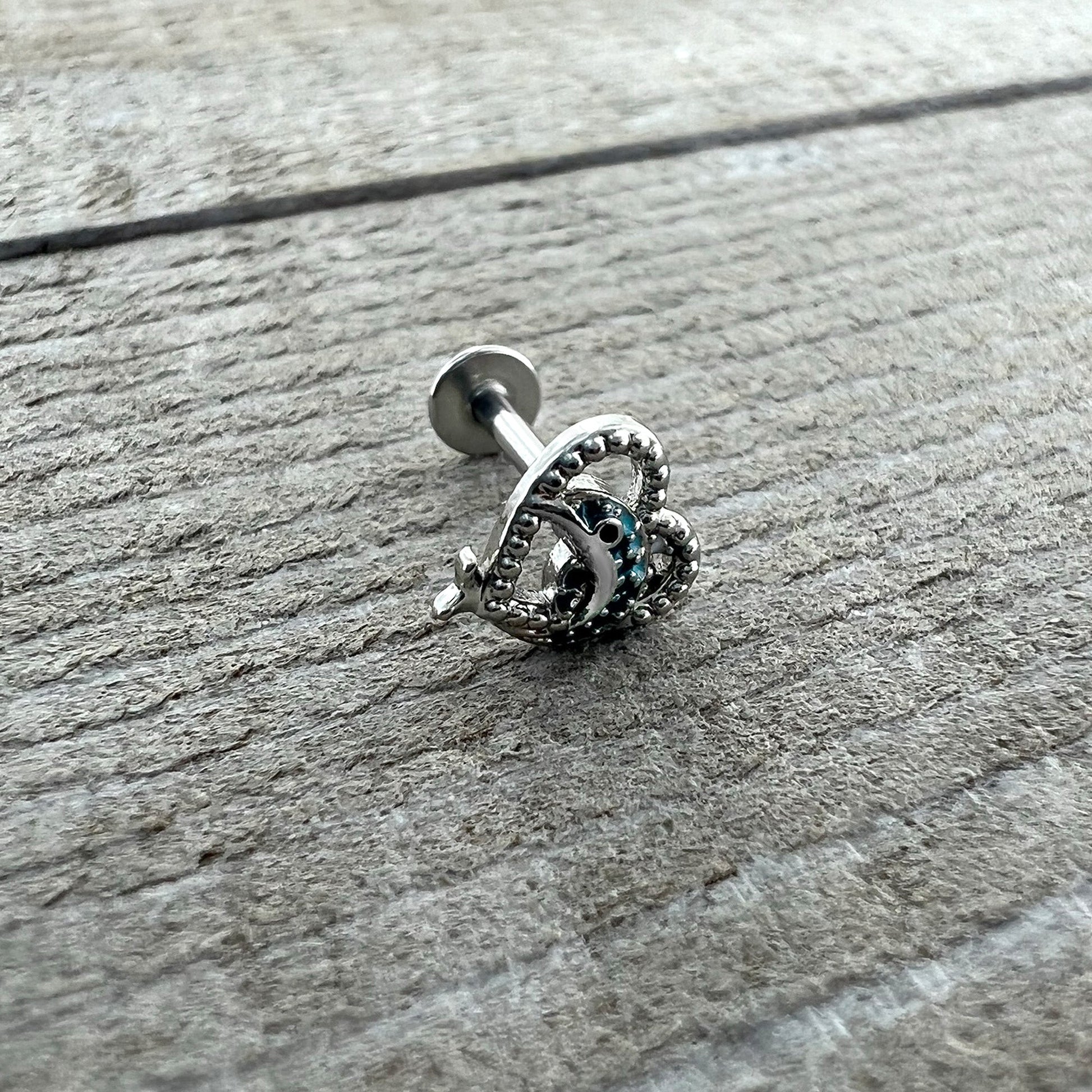 16G 5/16 Dolphin Blue Heart Valentines Day Labret Monroe Tragus