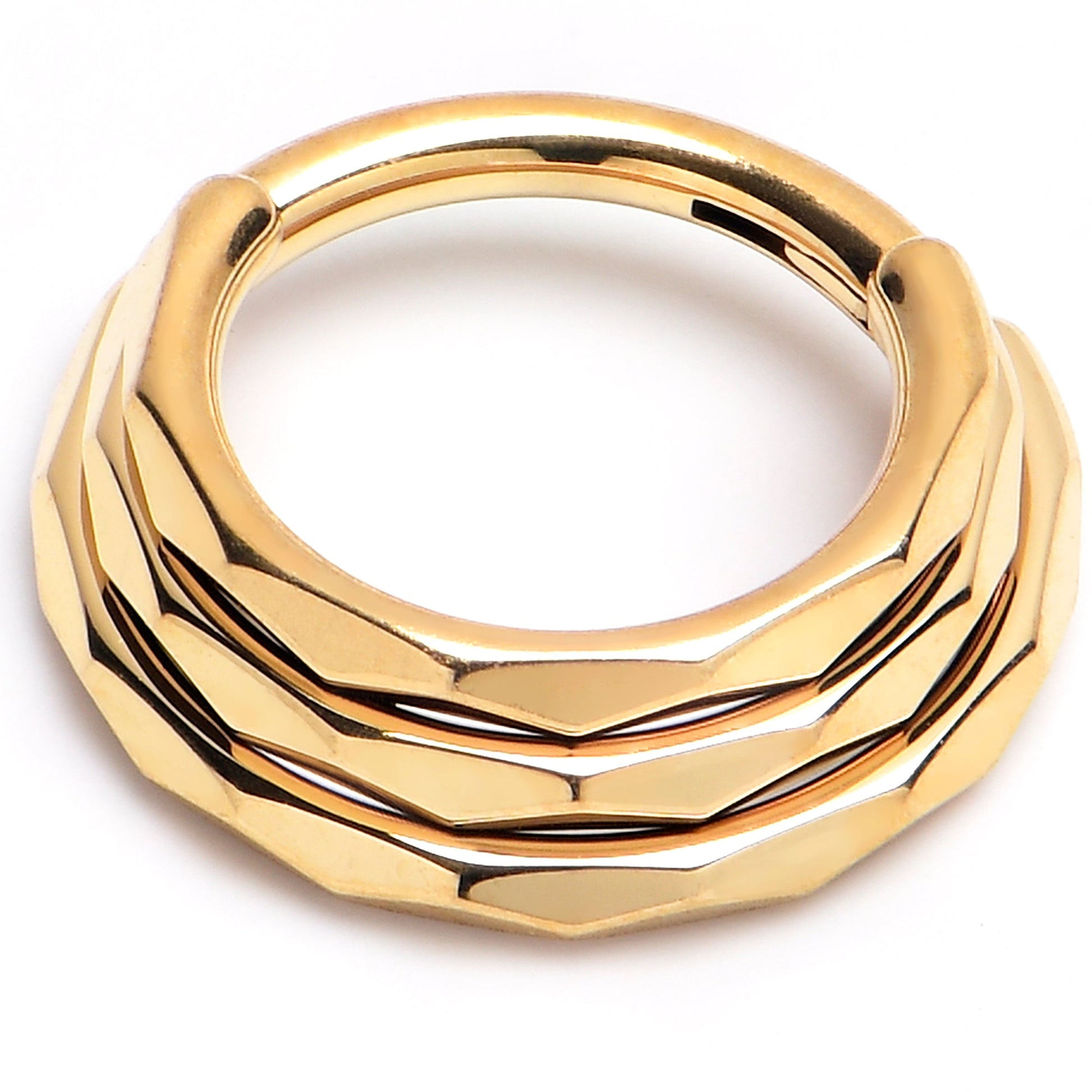 16 Gauge 5/16 Gold PVD Faceted Triple Stack Hoop Titanium Hinged Segment Ring